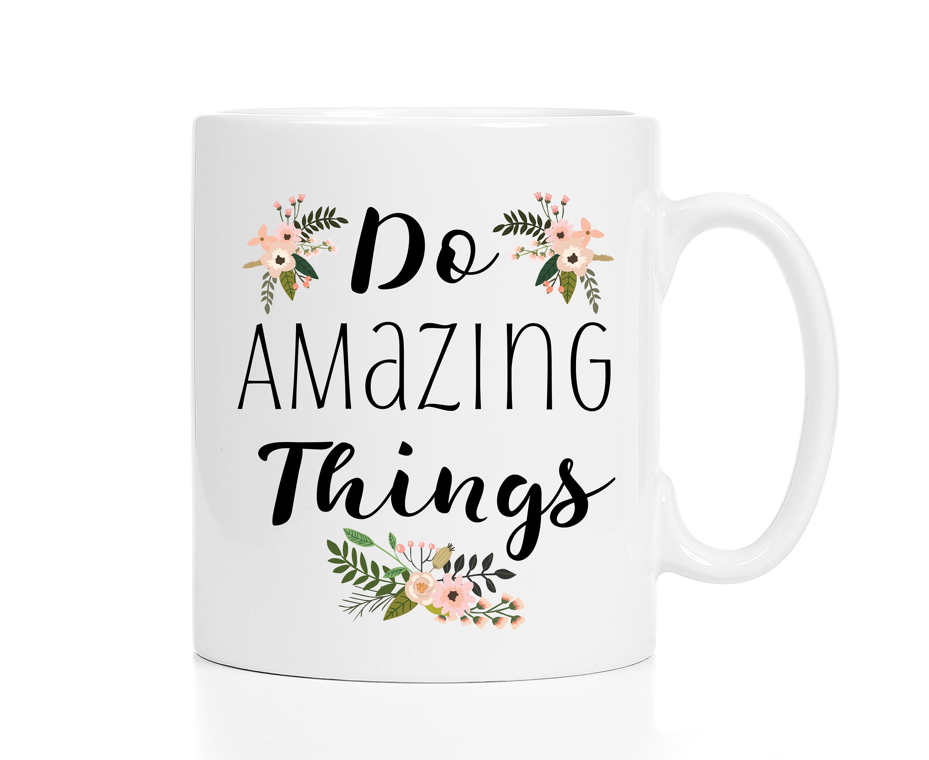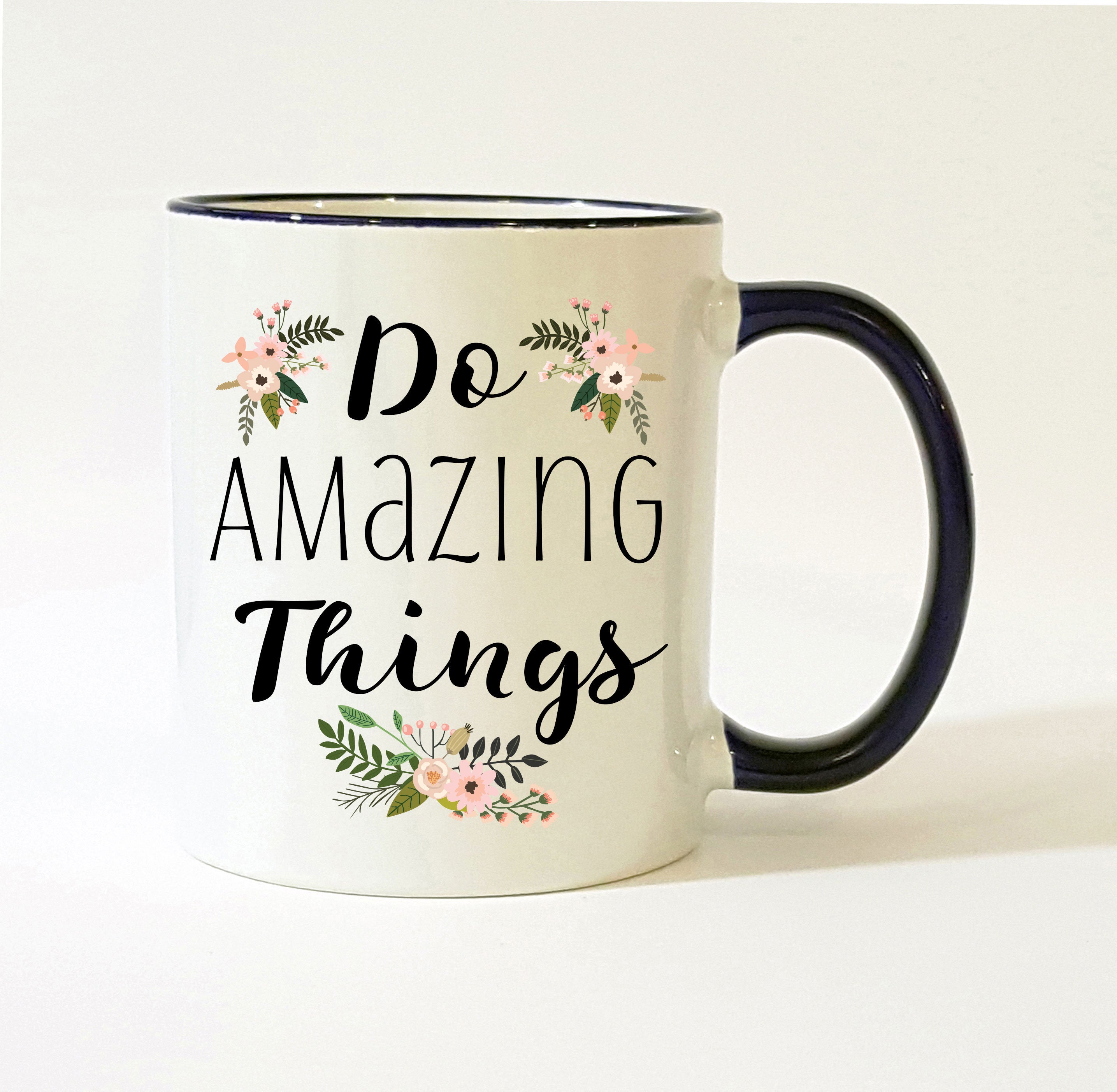 **No Delivery Dates Are Guaranteed. All shipping carriers are currently experiencing delays and transit times can be longer than normal. As a small business, we appreciate your patience and understanding that these circumstances are something that is out of our control. By purchasing this listing you are agreeing that you understand that the shipping date estimation may not be accurate.**Do amazing things. :) This mug comes in 11 or 15 oz. Dishwasher and microwave safe. Choose between all white or white with a black handle and rim. Design will be placed on both sides of the mug. Would you like a custom mug? Purchase this listing: https://www.etsy.com/listing/253308461/custom-mug-11-or-15-oz-mug-personalized Mad Kitty Mugs also has prints. Check out our other shop, Mad Kitty Media, where you'll find custom gold foil prints and other wonderful wall art: https://www.etsy.com/shop/MadKittyMedia ***************************************************************************** We'll ship your mug via Priority mail in a sturdy box with biodegradable peanuts and plenty of protective packaging. Do Amazing Things Mug / Graduation Mug / Graduation Gift / Gift for Graduate / 11 or 15 oz