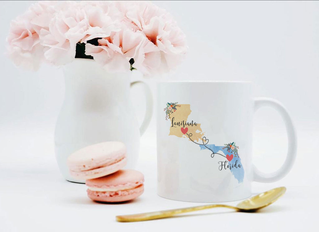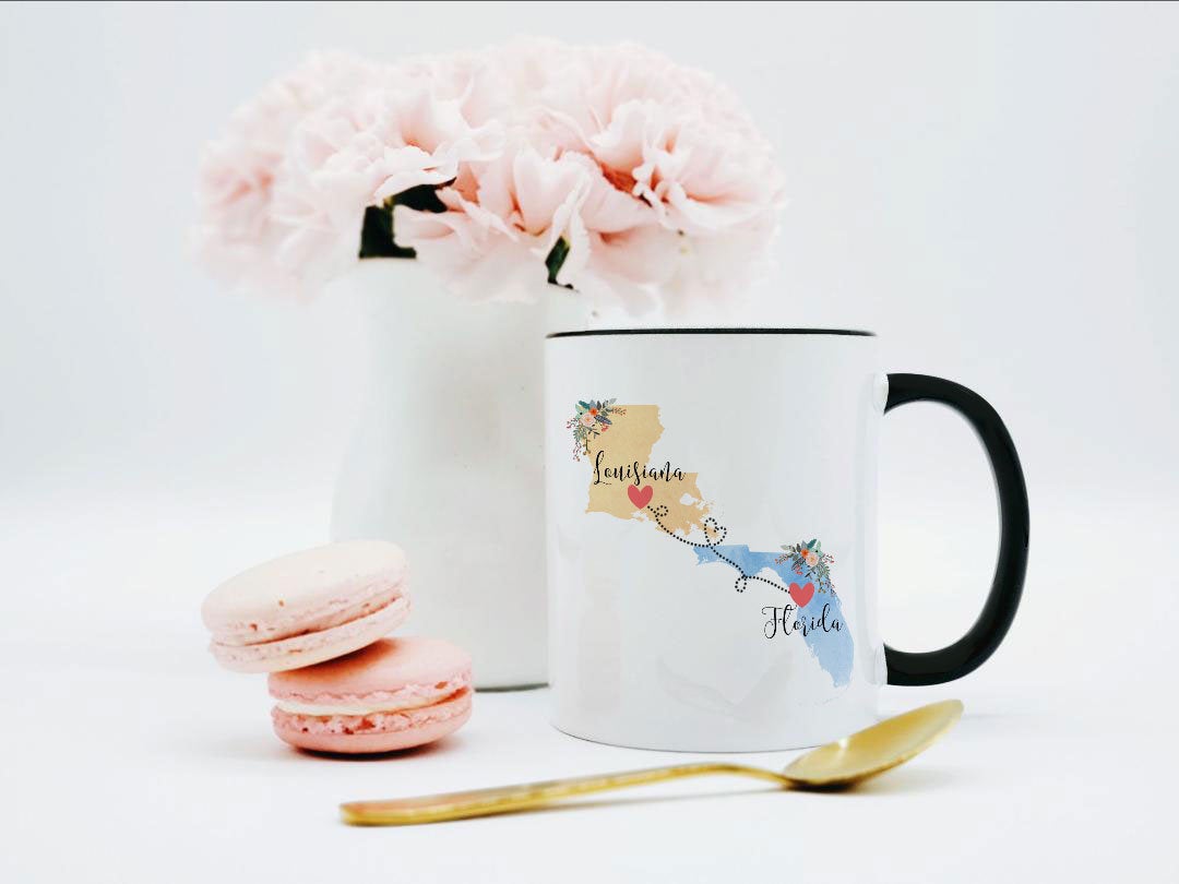 **No Delivery Dates Are Guaranteed. All shipping carriers are currently experiencing delays and transit times can be longer than normal. As a small business, we appreciate your patience and understanding that these circumstances are something that is out of our control. By purchasing this listing you are agreeing that you understand that the shipping date estimation may not be accurate.**Florida Louisiana Mug / Louisiana Florida Gift / College Student Going Away / Going Away Gift / College Student Gift / 11 or 15 oz