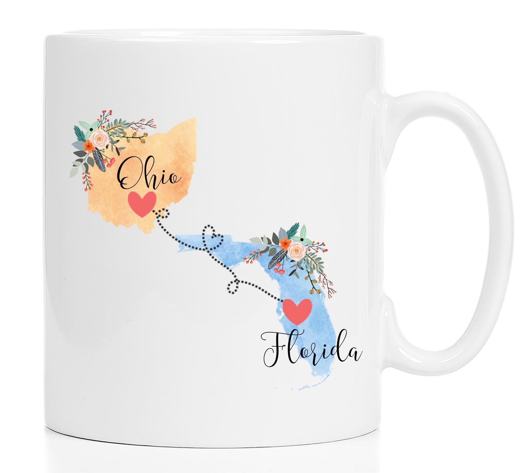 **No Delivery Dates Are Guaranteed. All shipping carriers are currently experiencing delays and transit times can be longer than normal. As a small business, we appreciate your patience and understanding that these circumstances are something that is out of our control. By purchasing this listing you are agreeing that you understand that the shipping date estimation may not be accurate.**Florida Ohio Mug / Ohio Florida Mug / Ohio to Florida Gift / Florida to Ohio Gift / 11 or 15 oz