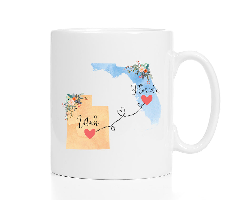 **No Delivery Dates Are Guaranteed. All shipping carriers are currently experiencing delays and transit times can be longer than normal. As a small business, we appreciate your patience and understanding that these circumstances are something that is out of our control. By purchasing this listing you are agreeing that you understand that the shipping date estimation may not be accurate.**Florida Utah Mug / Utah Florida Gift / Florida to Utah Coffee Mug / Utah to Florida Cup 11 or 15 oz