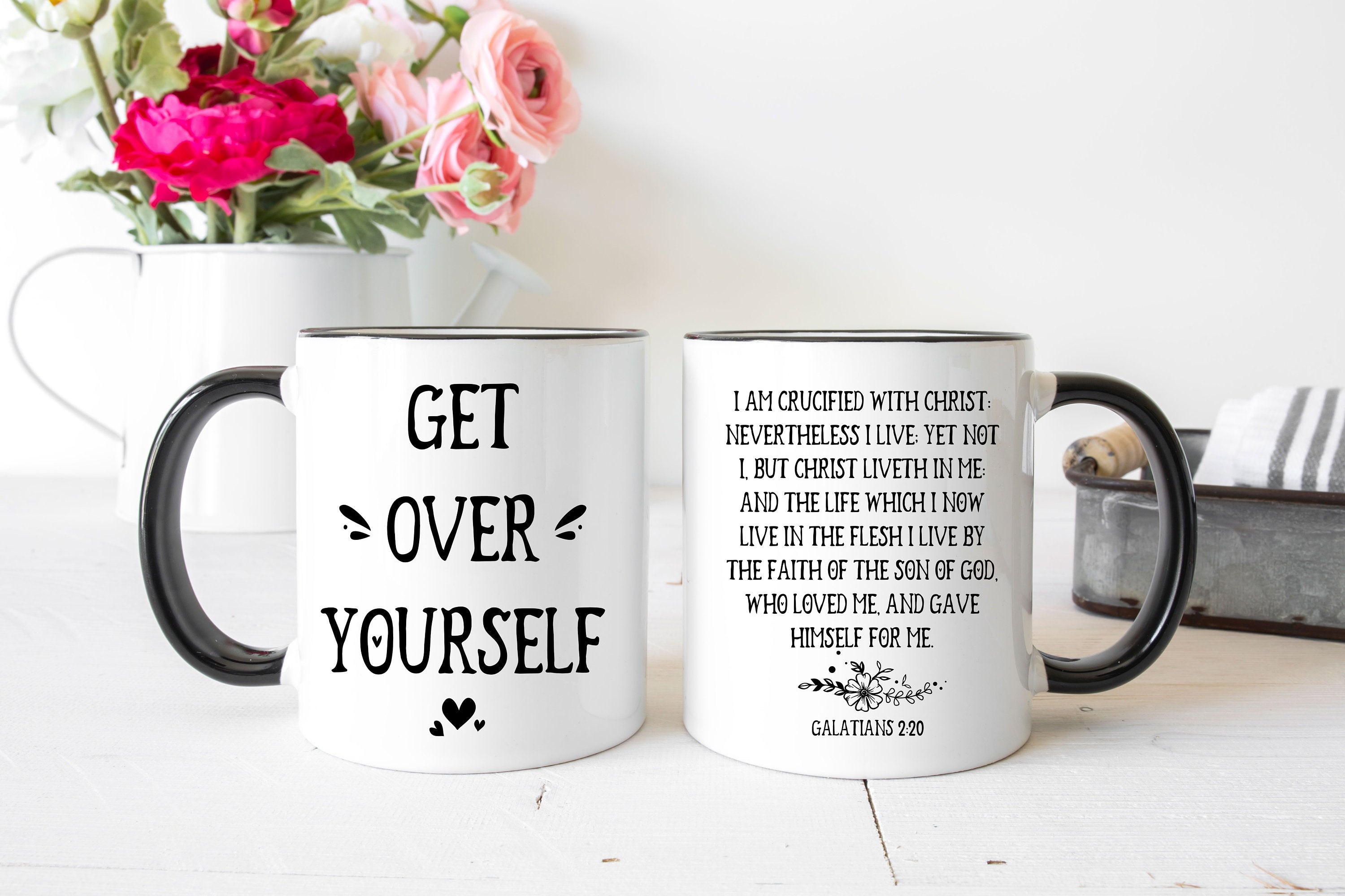 **No Delivery Dates Are Guaranteed. All shipping carriers are currently experiencing delays and transit times can be longer than normal. As a small business, we appreciate your patience and understanding that these circumstances are something that is out of our control. By purchasing this listing you are agreeing that you understand that the shipping date estimation may not be accurate.**Galations 2:20 Mug / Get Over Yourself Mug / Scripture Mug / Bible Verse Mug / Christian Mug / Coffee Cup / Prayer Partner Gift / KJV