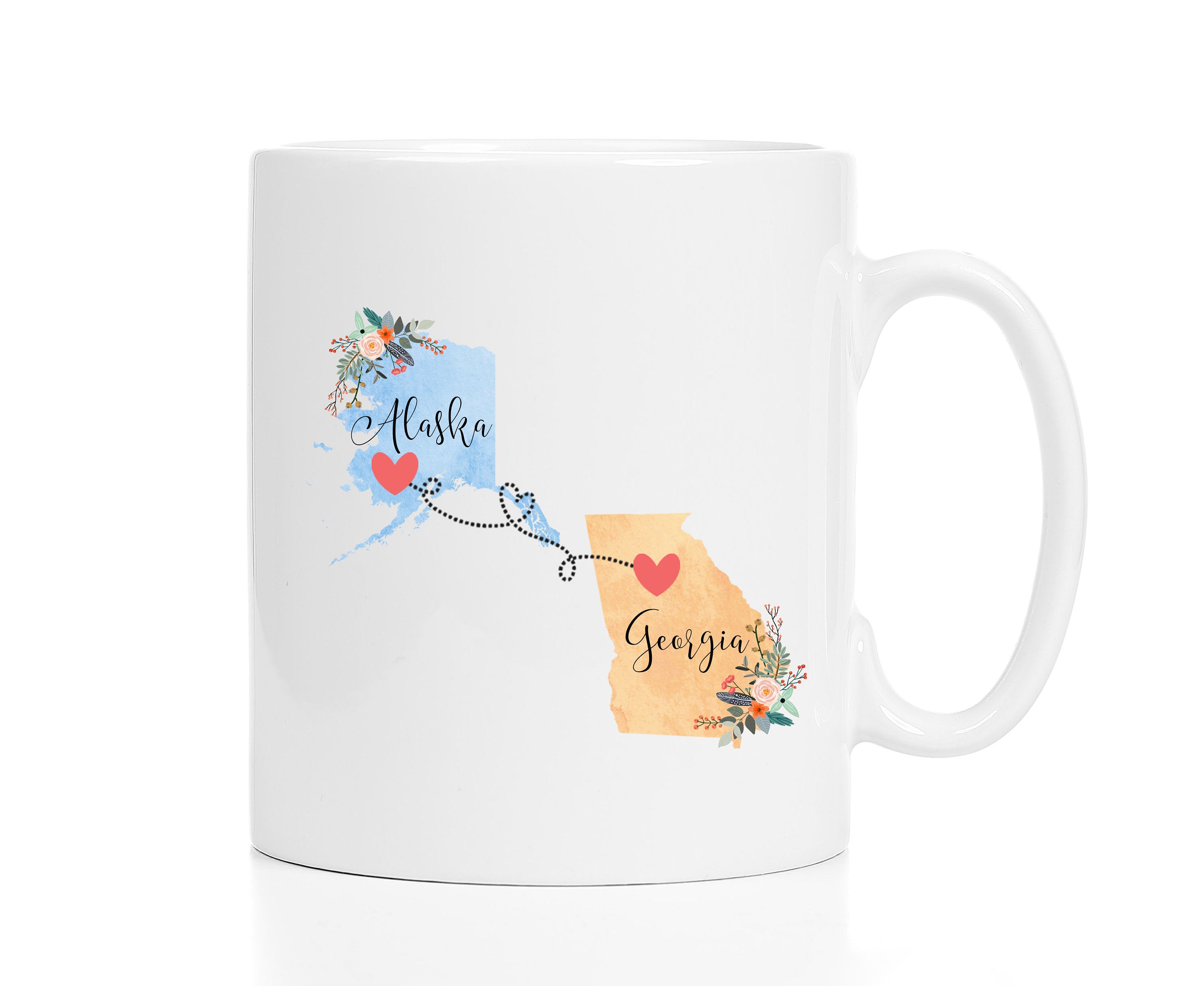 **No Delivery Dates Are Guaranteed. All shipping carriers are currently experiencing delays and transit times can be longer than normal. As a small business, we appreciate your patience and understanding that these circumstances are something that is out of our control. By purchasing this listing you are agreeing that you understand that the shipping date estimation may not be accurate.**Georgia Alaska Mug / Alaska Georgia Mug / Georgia to Alaska Gift / Alaska to Georgia Gift / 11 or 15 oz