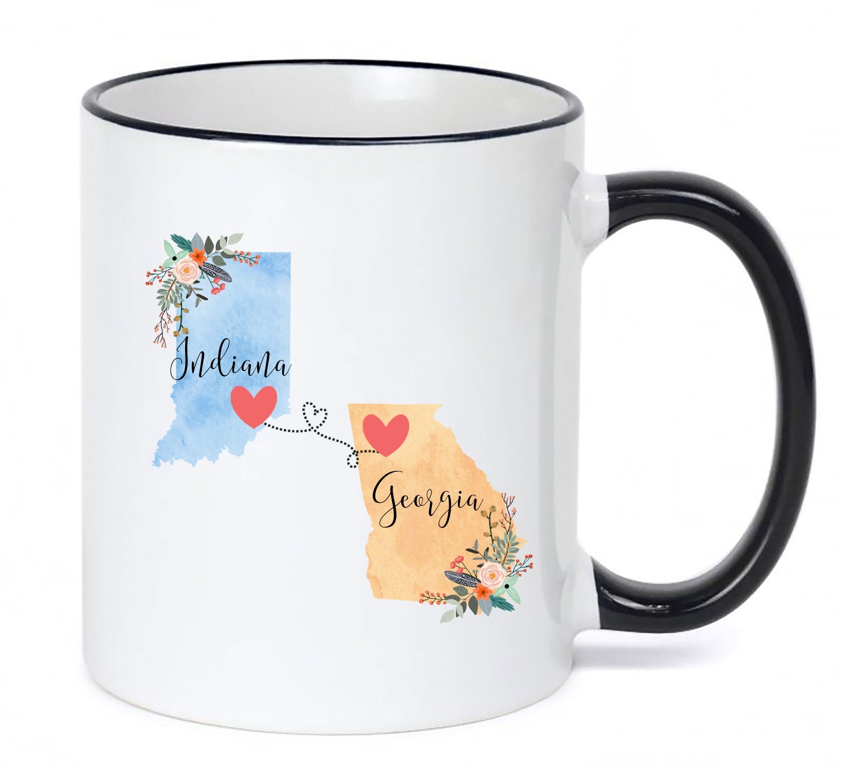**No Delivery Dates Are Guaranteed. All shipping carriers are currently experiencing delays and transit times can be longer than normal. As a small business, we appreciate your patience and understanding that these circumstances are something that is out of our control. By purchasing this listing you are agreeing that you understand that the shipping date estimation may not be accurate.**Georgia Indiana Mug / Indiana Georgia Mug / Georgia to Indiana Gift / Indiana to Georgia Gift / 11 or 15 oz