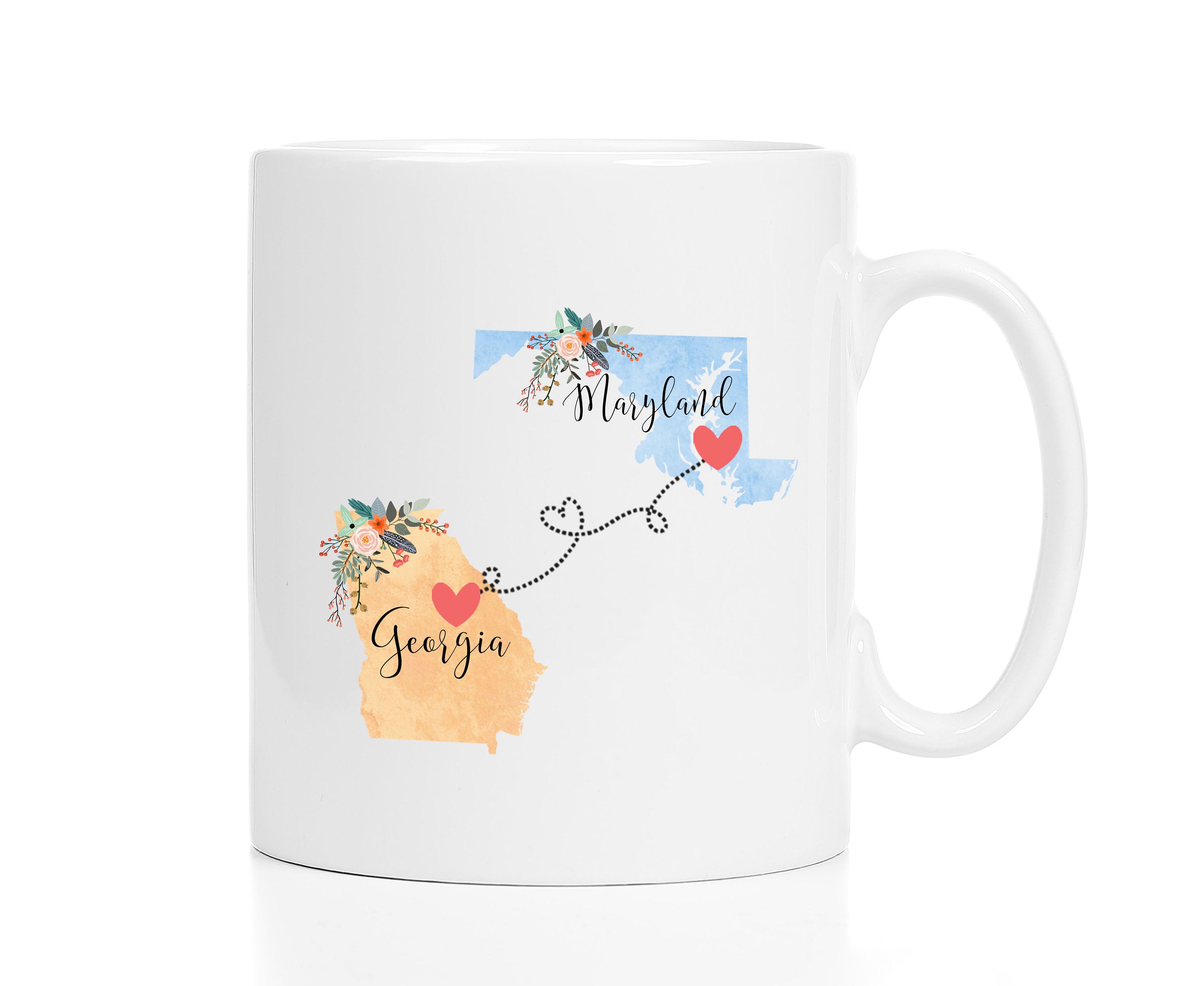 **No Delivery Dates Are Guaranteed. All shipping carriers are currently experiencing delays and transit times can be longer than normal. As a small business, we appreciate your patience and understanding that these circumstances are something that is out of our control. By purchasing this listing you are agreeing that you understand that the shipping date estimation may not be accurate.**Georgia Maryland Mug / Maryland Georgia Mug / Georgia to Maryland Gift / Maryland to Georgia Gift / 11 or 15 oz