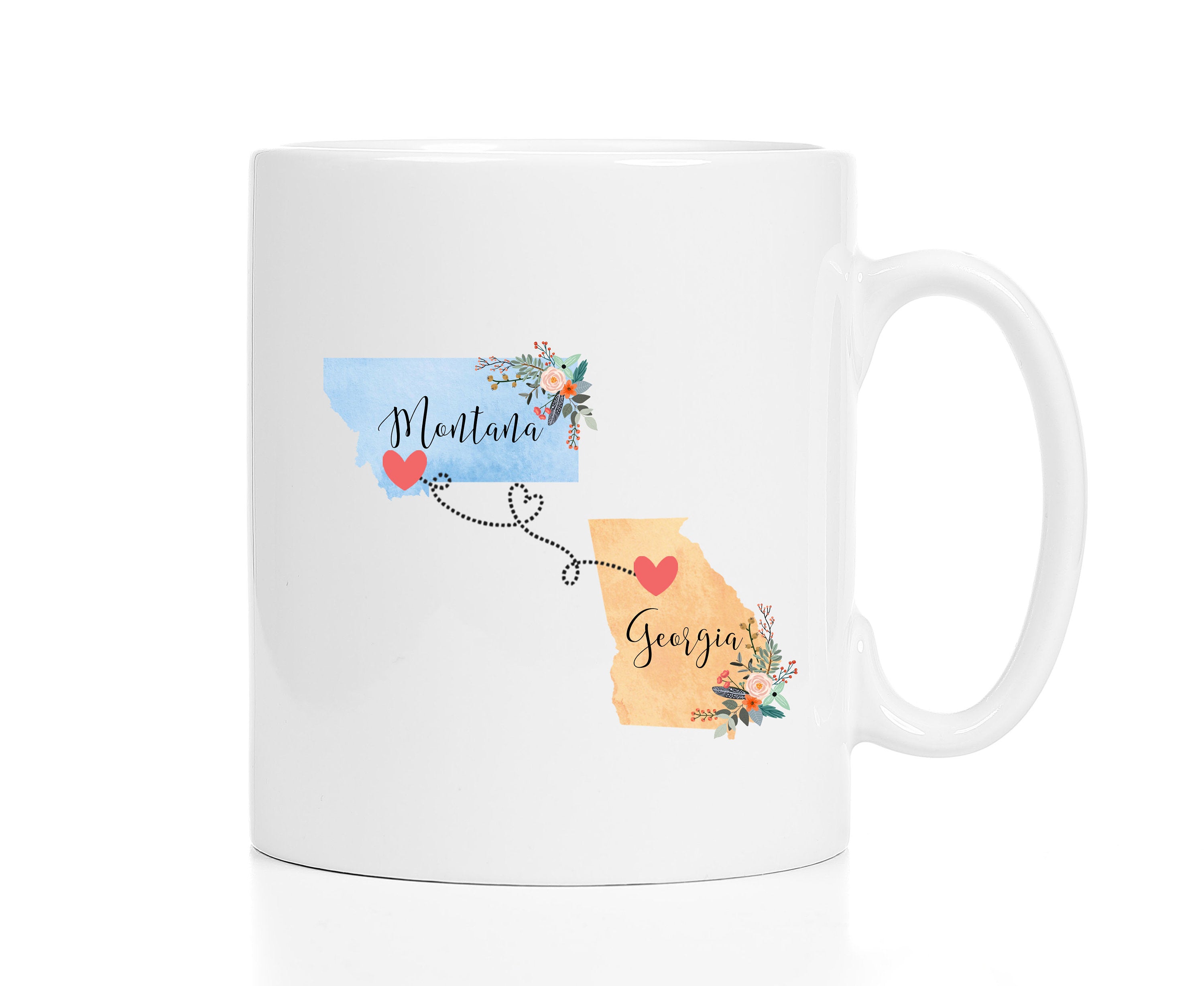 **No Delivery Dates Are Guaranteed. All shipping carriers are currently experiencing delays and transit times can be longer than normal. As a small business, we appreciate your patience and understanding that these circumstances are something that is out of our control. By purchasing this listing you are agreeing that you understand that the shipping date estimation may not be accurate.**Georgia Montana Mug / Montana Georgia Mug / Georgia to Montana Gift / Montana to Georgia Gift / 11 or 15 oz