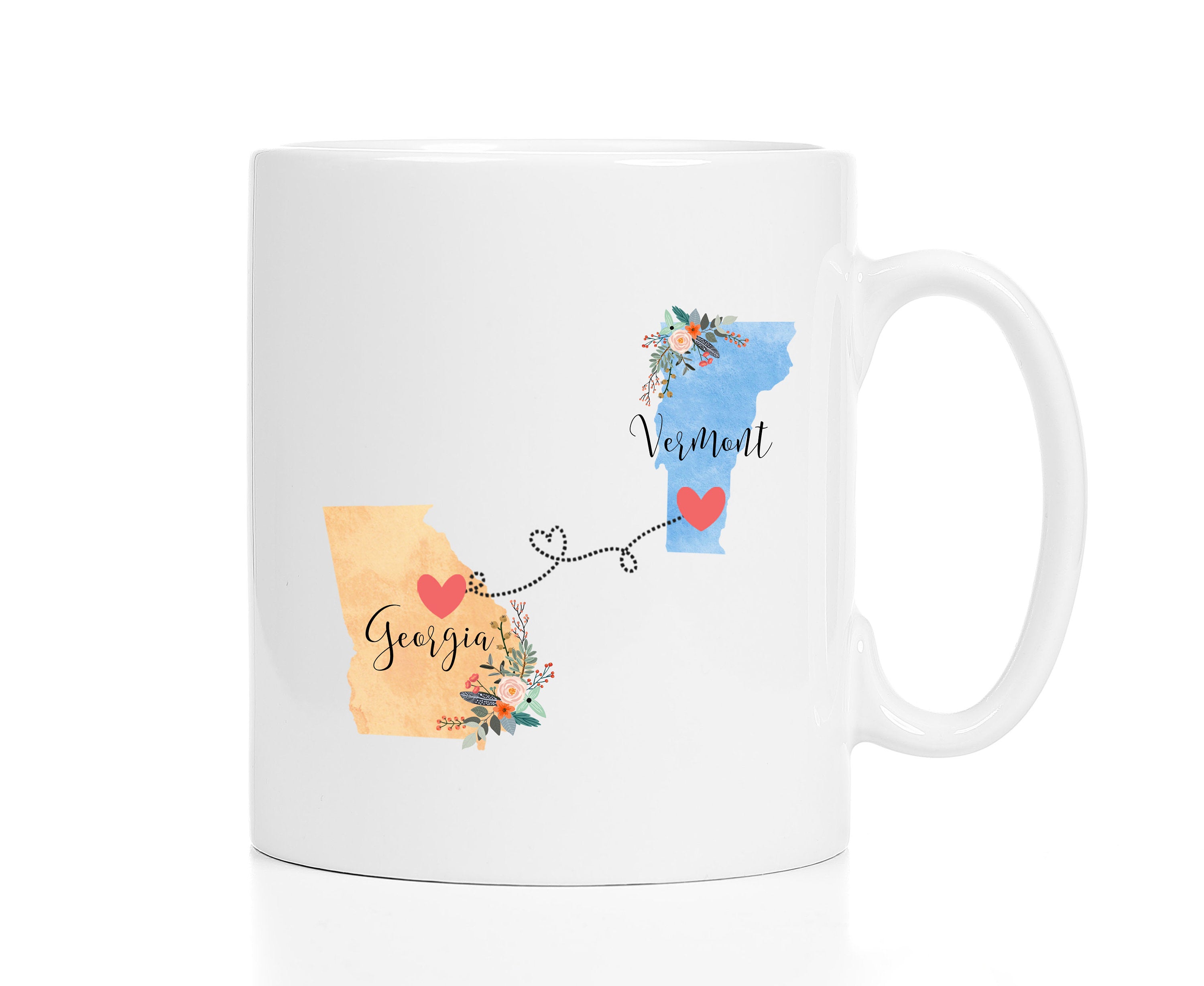 **No Delivery Dates Are Guaranteed. All shipping carriers are currently experiencing delays and transit times can be longer than normal. As a small business, we appreciate your patience and understanding that these circumstances are something that is out of our control. By purchasing this listing you are agreeing that you understand that the shipping date estimation may not be accurate.**Georgia Vermont Mug / Vermont Georgia Mug / Georgia to Vermont Gift / Vermont to Georgia Gift / 11 or 15 oz
