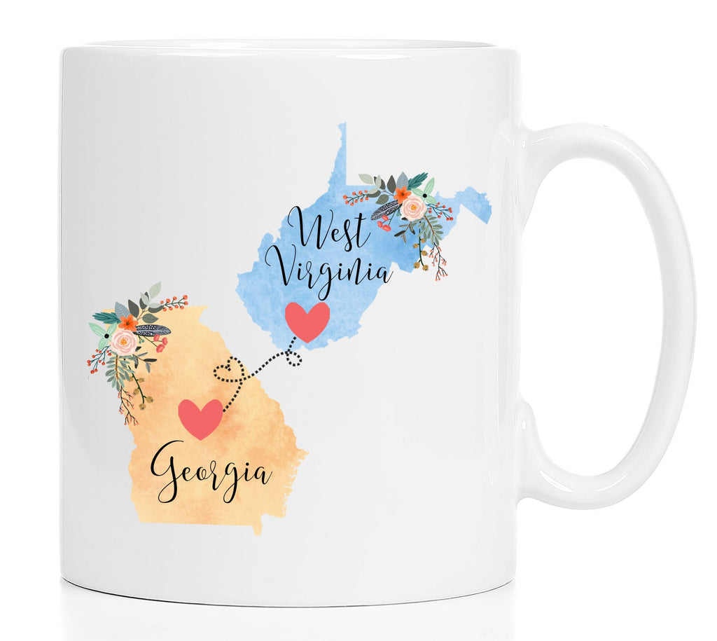 **No Delivery Dates Are Guaranteed. All shipping carriers are currently experiencing delays and transit times can be longer than normal. As a small business, we appreciate your patience and understanding that these circumstances are something that is out of our control. By purchasing this listing you are agreeing that you understand that the shipping date estimation may not be accurate.**Georgia West Virginia Mug / West Virginia Georgia Mug / College Student Going Away/College Student Gift/ Going Away Gift
