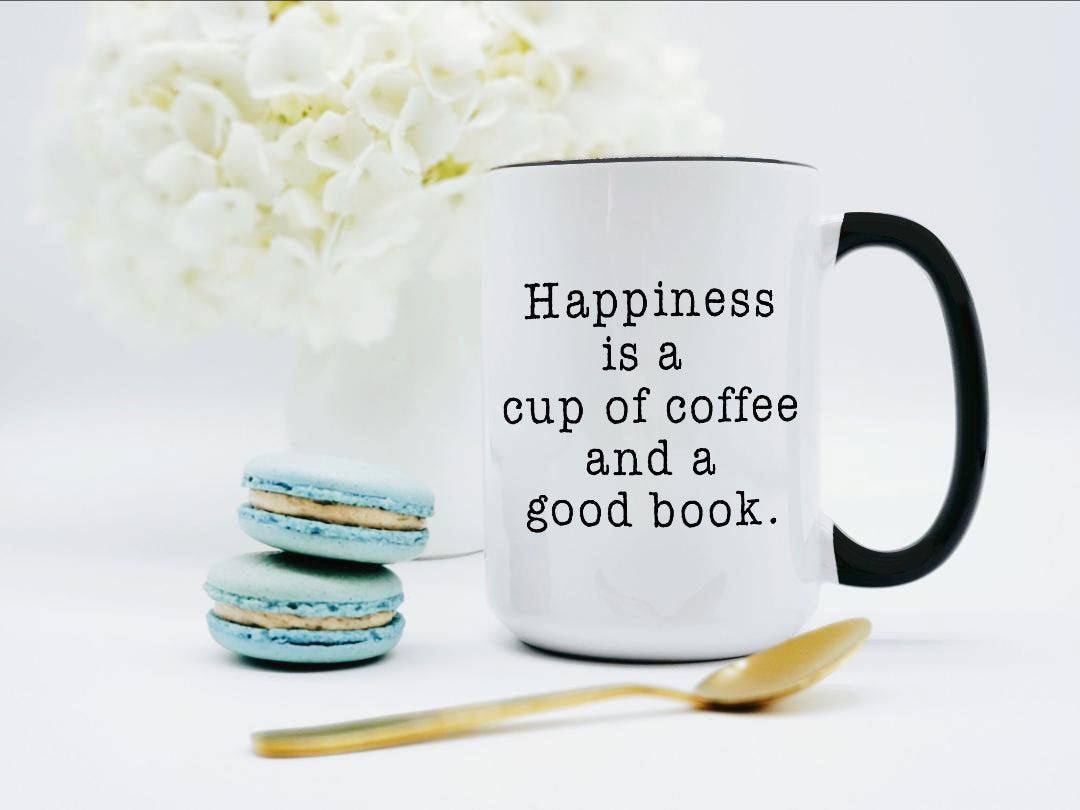 Gift for Book Lovers / Happiness Is a Cup of Coffee and a Good Book Mug / Literary Mug / Book Lovers Gift / Comfort Gift / Self-Care Gift