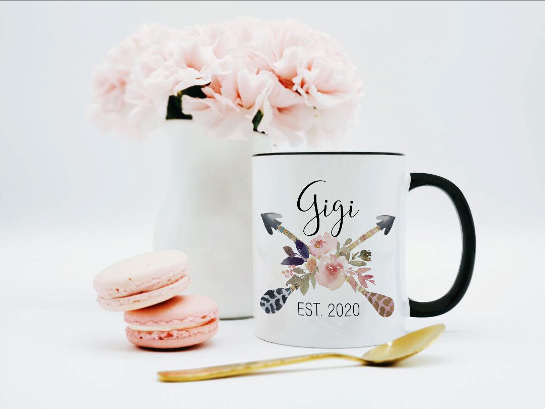 **No Delivery Dates Are Guaranteed. All shipping carriers are currently experiencing delays and transit times can be longer than normal. As a small business, we appreciate your patience and understanding that these circumstances are something that is out of our control. By purchasing this listing you are agreeing that you understand that the shipping date estimation may not be accurate.**Gigi Est 2020 Mug / Pregnancy Reveal Gift / Pregnancy Announce Mug Gigi / Pregnancy Reveal Gigi / New Gigi Mug / 11 or 15 oz Gorgeous floral mug, with "Gigi" and/or your choice of name. For example, I'm happy to put "Gigi," "Auntie," "Grams," etc. instead. I can also change the year to any year that suits you. HOW TO ORDER: If you'd like it customized, enter the name you'd like in the "notes to seller" at checkout. Also enter the year if you would like to change it. If you have any difficulty, simply send me the name in a convo. Note that no proof will be sent. This mug comes in 11 and 15 oz. Dishwasher and microwave safe. Design will be placed on both sides of the mug. **Send me a convo if you are interested in a bulk order so I can save you money on shipping!** Would you like a custom mug? Purchase this listing: https://www.etsy.com/listing/253308461/custom-mug-11-or-15-oz-mug-personalized Mad Kitty Mugs also has prints. Check out our other shop, Mad Kitty Media, where you'll find custom gold foil prints and other wonderful wall art: https://www.etsy.com/shop/MadKittyMedia ***************************************************************************** We'll ship your mug via Priority mail in a sturdy box with biodegradable peanuts and plenty of protective packaging.