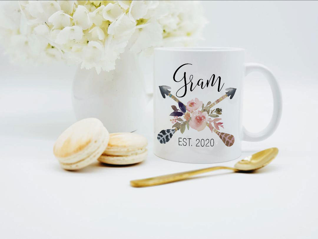 **No Delivery Dates Are Guaranteed. All shipping carriers are currently experiencing delays and transit times can be longer than normal. As a small business, we appreciate your patience and understanding that these circumstances are something that is out of our control. By purchasing this listing you are agreeing that you understand that the shipping date estimation may not be accurate.**Gram Est 2020 Mug / New Gram Mug / Pregnancy Reveal Gift / Pregnancy Announce Mug / Pregnancy Reveal to Gram / 11 or 15 oz