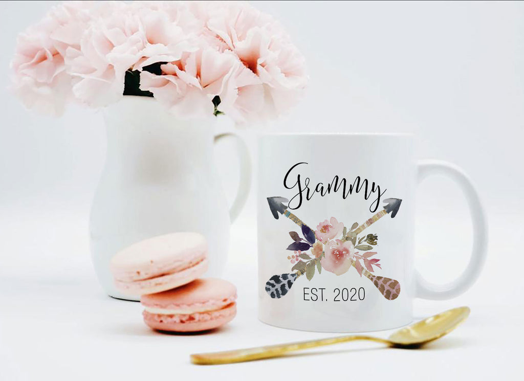 **No Delivery Dates Are Guaranteed. All shipping carriers are currently experiencing delays and transit times can be longer than normal. As a small business, we appreciate your patience and understanding that these circumstances are something that is out of our control. By purchasing this listing you are agreeing that you understand that the shipping date estimation may not be accurate.**Grammy Est 2020 Mug / New Grammy Mug / Pregnancy Reveal Gift / Pregnancy Announce Mug / Pregnancy Reveal to Grammy / 11 or 15 oz Gorgeous floral mug, with "Grammy" and/or your choice of name. For example, I'm happy to put "Gigi," "Aunt," "Grams," etc. instead. I can also change the year to any year that suits you. HOW TO ORDER: If you'd like it customized, enter the name you'd like in the "notes to seller" at checkout. Also enter the year if you would like to change it. If you have any difficulty, simply send me the name in a convo. Note that no proof will be sent. This mug comes in 11 and 15 oz. Dishwasher and microwave safe. Design will be placed on both sides of the mug. **Send me a convo if you are interested in a bulk order so I can save you money on shipping!** Would you like a custom mug? Purchase this listing: https://www.etsy.com/listing/253308461/custom-mug-11-or-15-oz-mug-personalized Mad Kitty Mugs also has prints. Check out our other shop, Mad Kitty Media, where you'll find custom gold foil prints and other wonderful wall art: https://www.etsy.com/shop/MadKittyMedia ***************************************************************************** We'll ship your mug via Priority mail in a sturdy box with biodegradable peanuts and plenty of protective packaging.