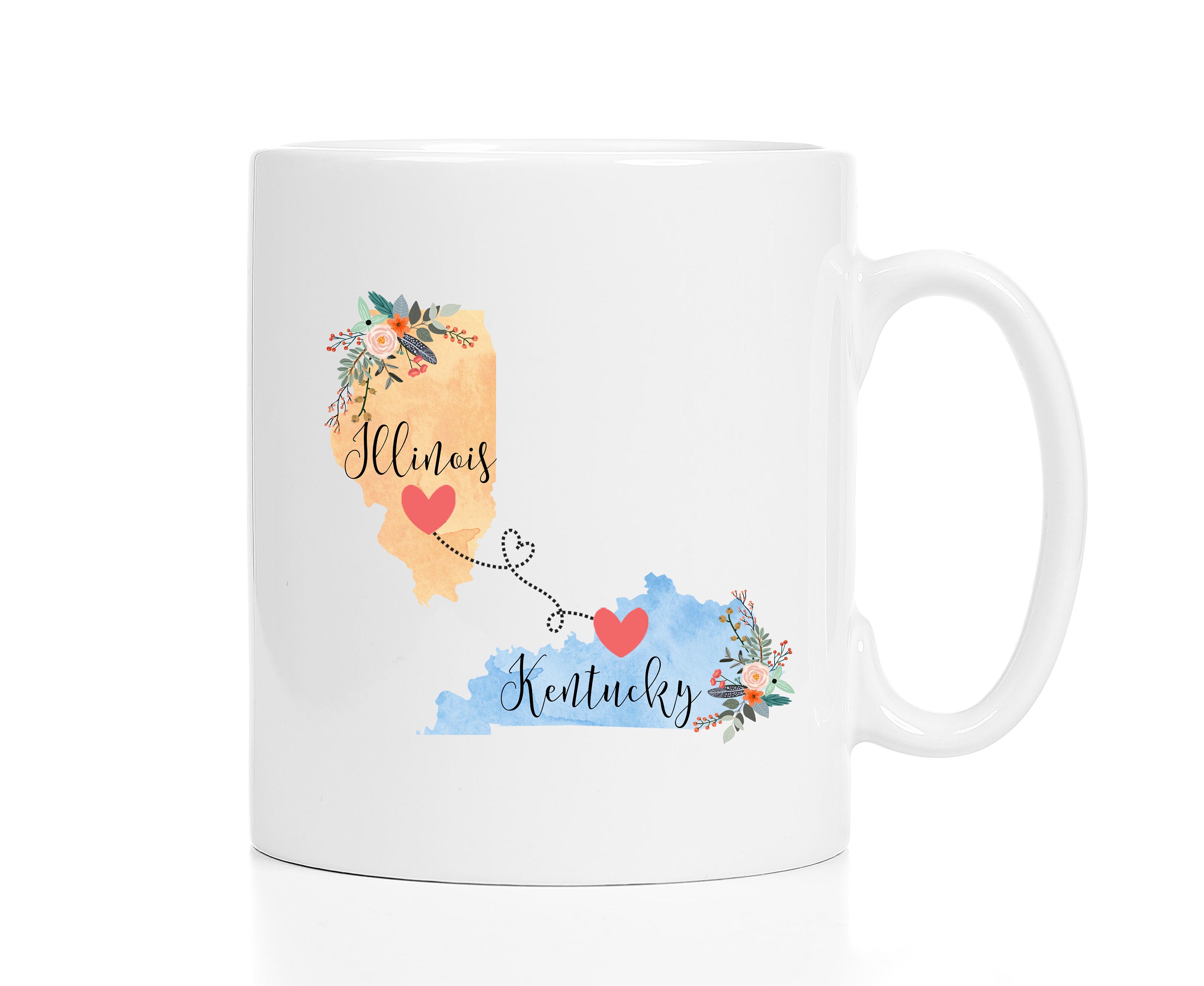 **No Delivery Dates Are Guaranteed. All shipping carriers are currently experiencing delays and transit times can be longer than normal. As a small business, we appreciate your patience and understanding that these circumstances are something that is out of our control. By purchasing this listing you are agreeing that you understand that the shipping date estimation may not be accurate.**Illinois Kentucky Mug / Kentucky Illinois Gift / Illinois to Kentucky Coffee Mug / Kentucky to Illinois Cup 11 or 15 oz