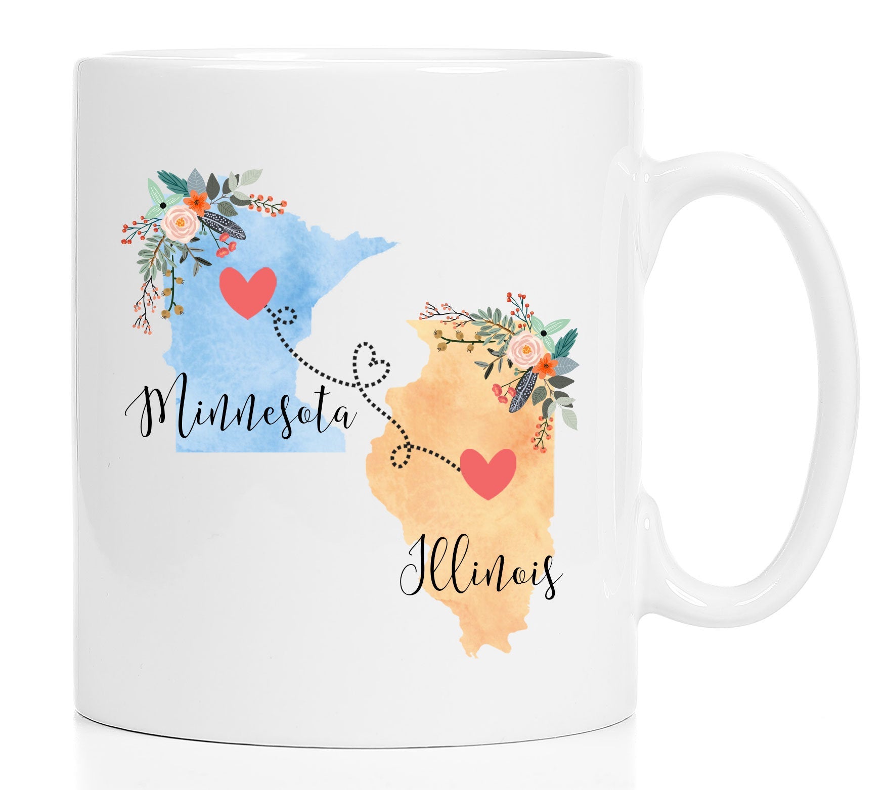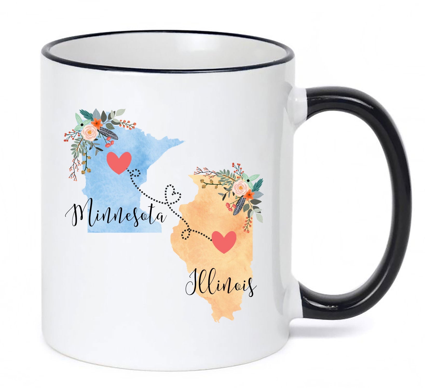 **No Delivery Dates Are Guaranteed. All shipping carriers are currently experiencing delays and transit times can be longer than normal. As a small business, we appreciate your patience and understanding that these circumstances are something that is out of our control. By purchasing this listing you are agreeing that you understand that the shipping date estimation may not be accurate.**Illinois Minnesota Mug / Minnesota Illinois Mug / Illinois to Minnesota Gift / Minnesota to Illinois Gift / 11 or 15 oz