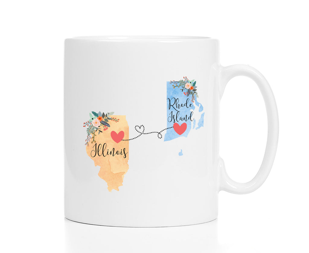 **No Delivery Dates Are Guaranteed. All shipping carriers are currently experiencing delays and transit times can be longer than normal. As a small business, we appreciate your patience and understanding that these circumstances are something that is out of our control. By purchasing this listing you are agreeing that you understand that the shipping date estimation may not be accurate.**Illinois Rhode Island Mug / Rhode Island Illinois Mug / Illinois to Rhode Island Gift / Rhode Island to Illinois Gift 11 or 15 oz