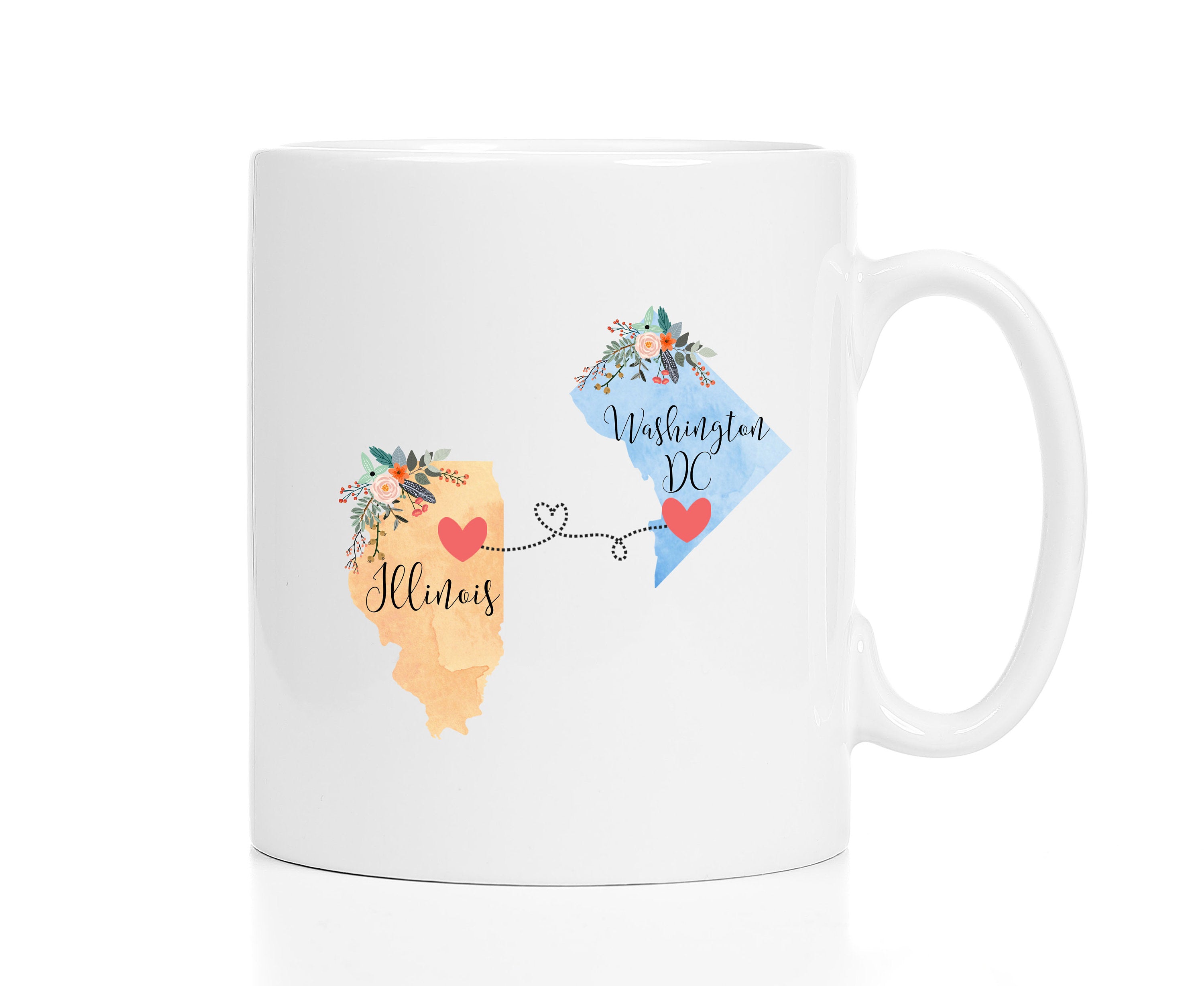 **No Delivery Dates Are Guaranteed. All shipping carriers are currently experiencing delays and transit times can be longer than normal. As a small business, we appreciate your patience and understanding that these circumstances are something that is out of our control. By purchasing this listing you are agreeing that you understand that the shipping date estimation may not be accurate.**Illinois Washington DC Mug / Washington DC Illinois Mug / Illinois to Washington DC Gift / 11 or 15 oz
