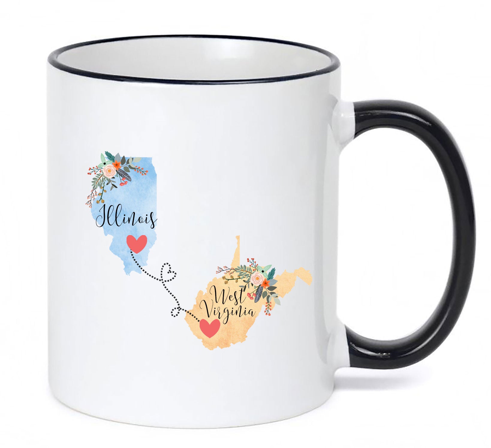 **No Delivery Dates Are Guaranteed. All shipping carriers are currently experiencing delays and transit times can be longer than normal. As a small business, we appreciate your patience and understanding that these circumstances are something that is out of our control. By purchasing this listing you are agreeing that you understand that the shipping date estimation may not be accurate.**Illinois West Virginia Mug / West Virginia Illinois Mug / Illinois to West Virginia Gift / West Virginia to Illinois Coffee Cup 11 or 15 oz