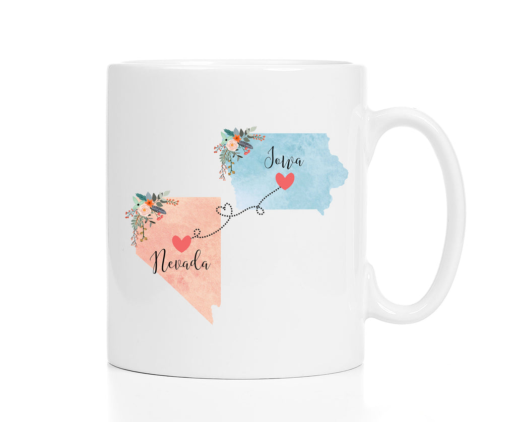 **No Delivery Dates Are Guaranteed. All shipping carriers are currently experiencing delays and transit times can be longer than normal. As a small business, we appreciate your patience and understanding that these circumstances are something that is out of our control. By purchasing this listing you are agreeing that you understand that the shipping date estimation may not be accurate.**Iowa Nevada Mug / Nevada Iowa Mug / Iowa to Nevada Gift / Nevada to Iowa Cup / Hostess Gift 11 or 15 oz