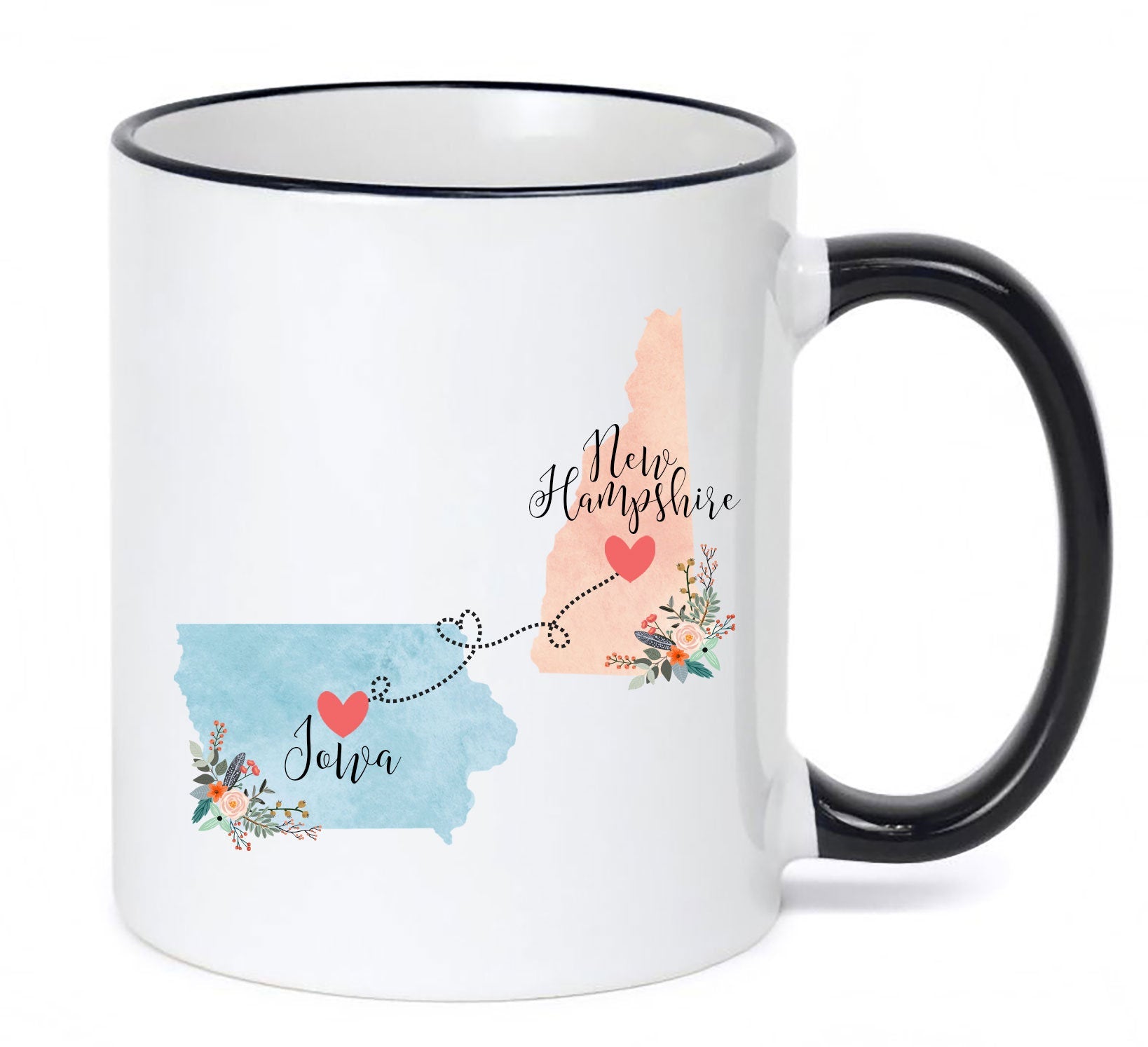**No Delivery Dates Are Guaranteed. All shipping carriers are currently experiencing delays and transit times can be longer than normal. As a small business, we appreciate your patience and understanding that these circumstances are something that is out of our control. By purchasing this listing you are agreeing that you understand that the shipping date estimation may not be accurate.**Iowa New Hampshire Mug / New Hampshire Iowa Mug / Iowa to New Hampshire Gift / New Hampshire to Iowa Cup / Hostess Gift 11 or 15 oz