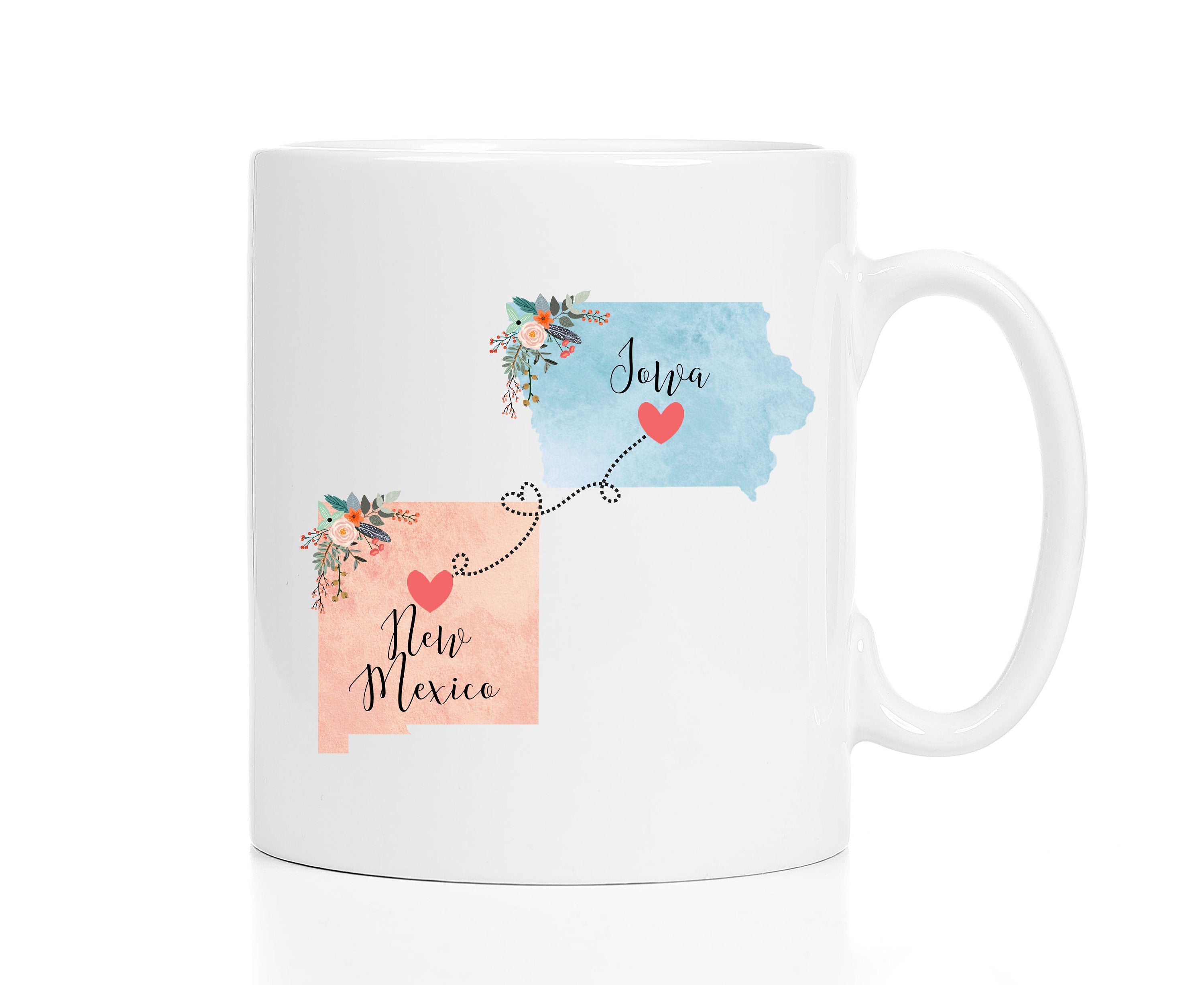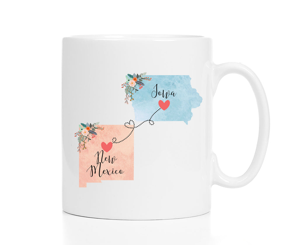 **No Delivery Dates Are Guaranteed. All shipping carriers are currently experiencing delays and transit times can be longer than normal. As a small business, we appreciate your patience and understanding that these circumstances are something that is out of our control. By purchasing this listing you are agreeing that you understand that the shipping date estimation may not be accurate.**Iowa New Mexico Mug / New Mexico Iowa Mug / Iowa to New Mexico Gift / New Mexico to Iowa Cup / Hostess Gift 11 or 15 oz