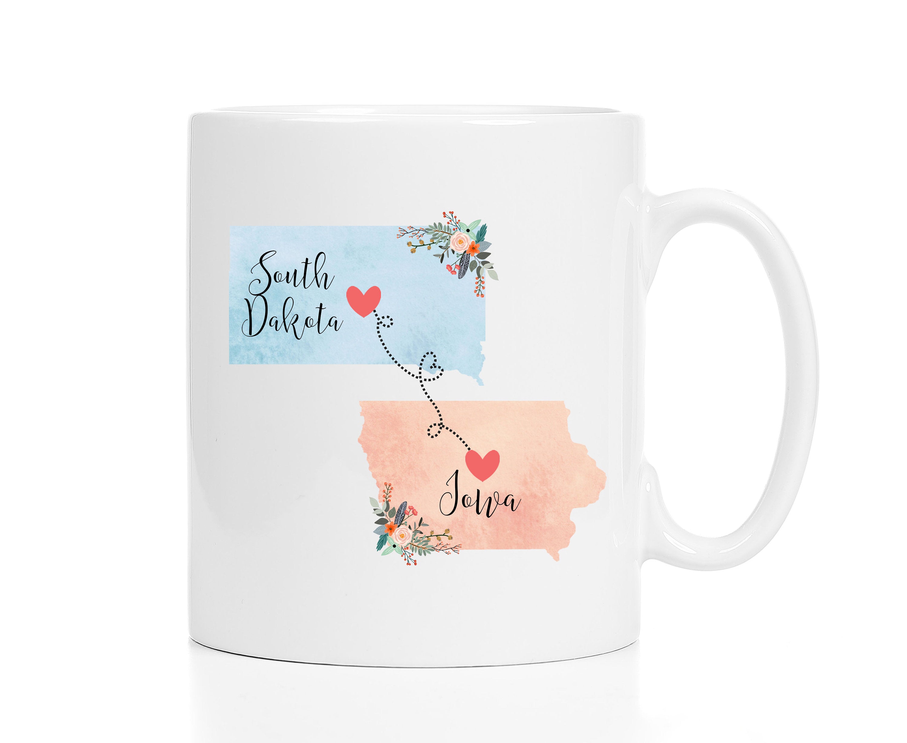 **No Delivery Dates Are Guaranteed. All shipping carriers are currently experiencing delays and transit times can be longer than normal. As a small business, we appreciate your patience and understanding that these circumstances are something that is out of our control. By purchasing this listing you are agreeing that you understand that the shipping date estimation may not be accurate.**Iowa South Dakota Mug / South Dakota Iowa Mug / Iowa to South Dakota Gift / South Dakota to Iowa Cup / Hostess Gift 11 or 15 oz