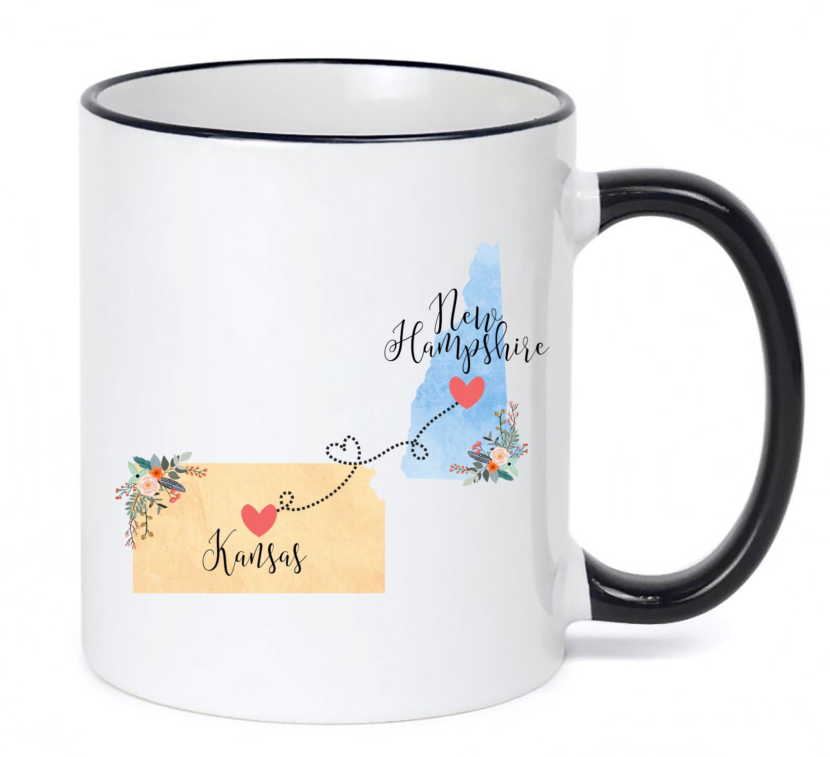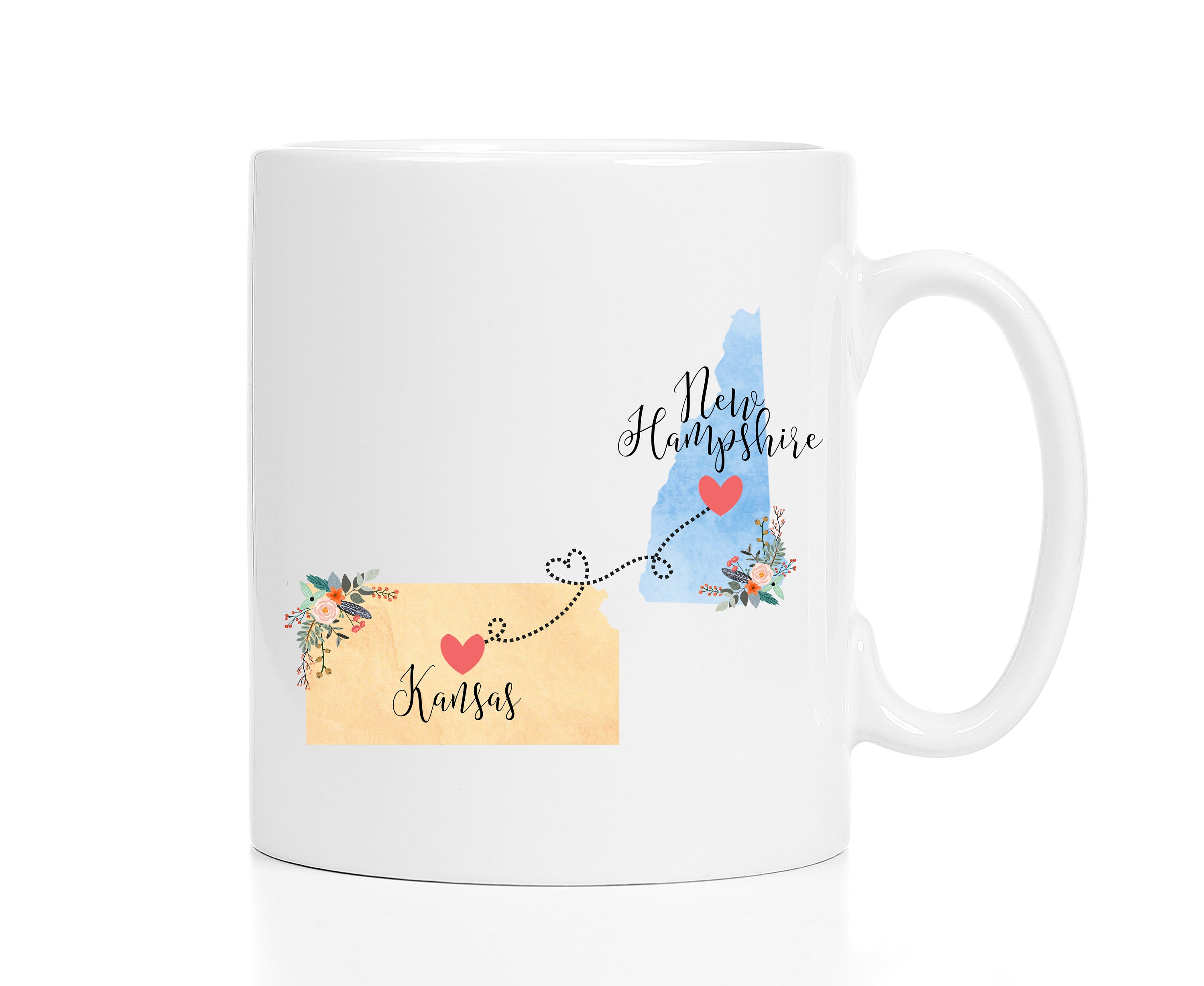 **No Delivery Dates Are Guaranteed. All shipping carriers are currently experiencing delays and transit times can be longer than normal. As a small business, we appreciate your patience and understanding that these circumstances are something that is out of our control. By purchasing this listing you are agreeing that you understand that the shipping date estimation may not be accurate.**Kansas New Hampshire Mug / New Hampshire Kansas Gift / Kansas to New Hampshire Coffee Mug / NH to Kansas Cup / Hostess Gift / 11 or 15 oz