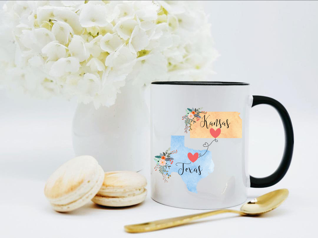 **No Delivery Dates Are Guaranteed. All shipping carriers are currently experiencing delays and transit times can be longer than normal. As a small business, we appreciate your patience and understanding that these circumstances are something that is out of our control. By purchasing this listing you are agreeing that you understand that the shipping date estimation may not be accurate.**Kansas Texas Mug / Texas Kansas Mug /College Student Going Away/Going Away Gift/College Student Gift / 11 or 15 oz
