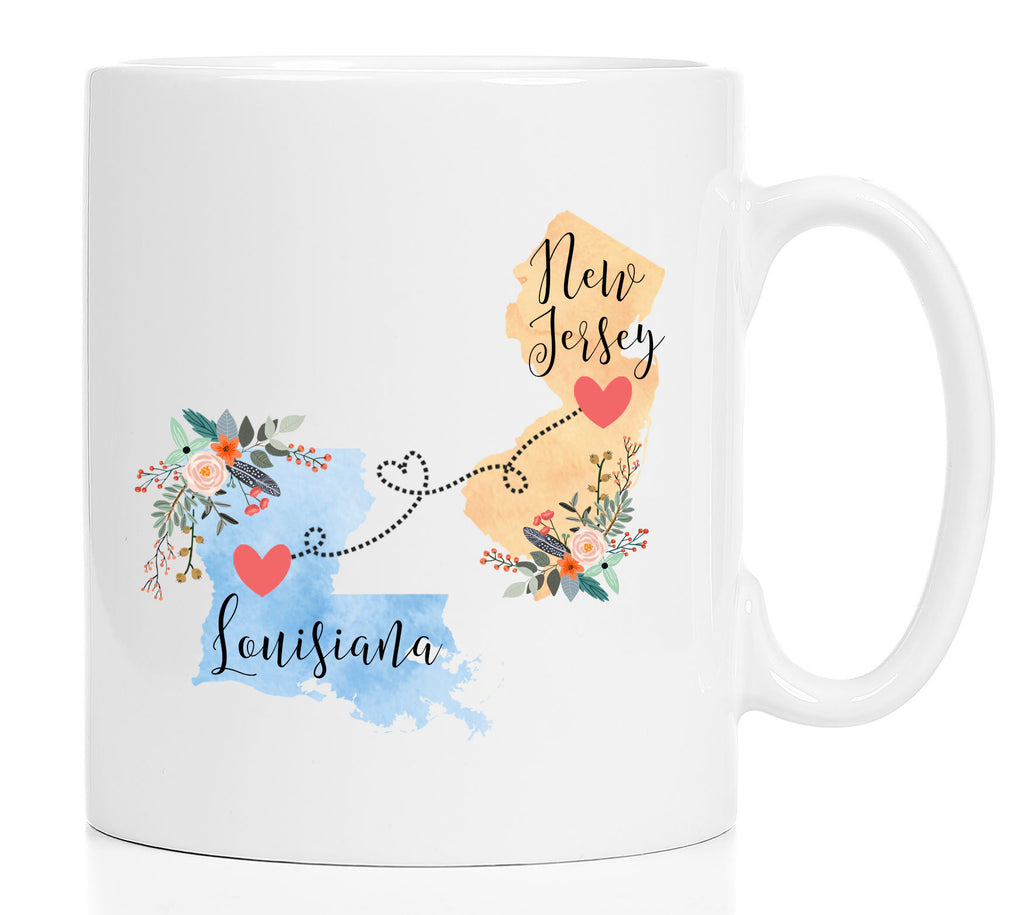 **No Delivery Dates Are Guaranteed. All shipping carriers are currently experiencing delays and transit times can be longer than normal. As a small business, we appreciate your patience and understanding that these circumstances are something that is out of our control. By purchasing this listing you are agreeing that you understand that the shipping date estimation may not be accurate.**Louisiana New Jersey Mug / New Jersey Louisiana Mug / Louisiana to New Jersey Gift / New Jersey to Louisiana Gift / 11 or 15 oz