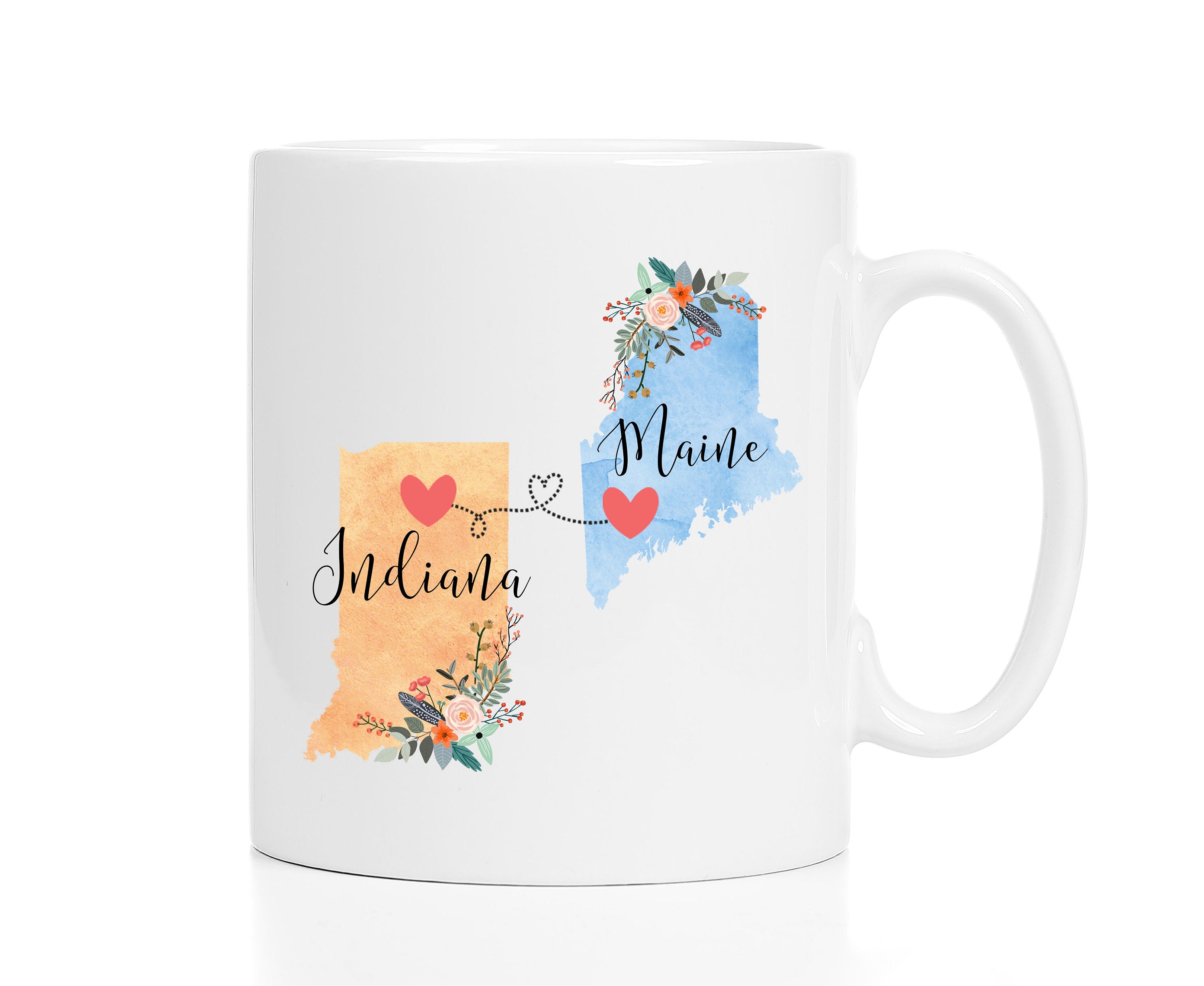**No Delivery Dates Are Guaranteed. All shipping carriers are currently experiencing delays and transit times can be longer than normal. As a small business, we appreciate your patience and understanding that these circumstances are something that is out of our control. By purchasing this listing you are agreeing that you understand that the shipping date estimation may not be accurate.**Maine Indiana Mug / Maine to Indiana Mug / College Student Going Away/Going Away Gift/College Student Gift / 11 or 15 oz