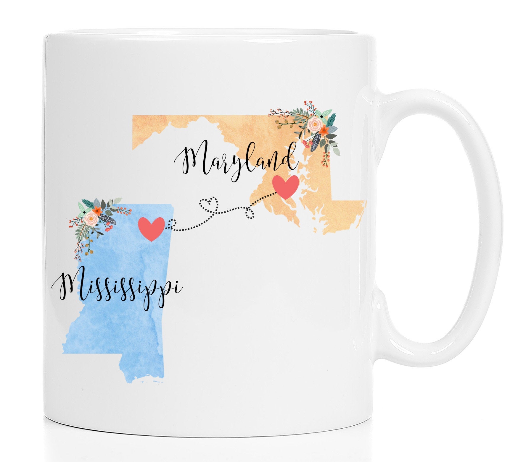 **No Delivery Dates Are Guaranteed. All shipping carriers are currently experiencing delays and transit times can be longer than normal. As a small business, we appreciate your patience and understanding that these circumstances are something that is out of our control. By purchasing this listing you are agreeing that you understand that the shipping date estimation may not be accurate.**Maryland Mississippi Mug / Mississippi Maryland Mug / College Student Going Away/Going Away Gift/College Student Gift/ 11 or 15 oz