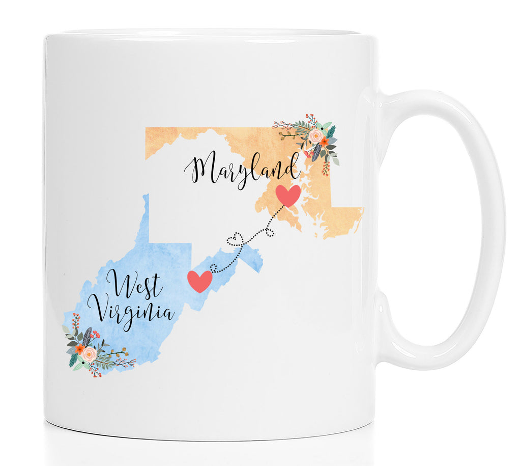 **No Delivery Dates Are Guaranteed. All shipping carriers are currently experiencing delays and transit times can be longer than normal. As a small business, we appreciate your patience and understanding that these circumstances are something that is out of our control. By purchasing this listing you are agreeing that you understand that the shipping date estimation may not be accurate.**Maryland West Virginia Mug / West Virginia Maryland Mug / College Student Going Away/Going Away Gift/College Student Gift/ 11 or 15 oz