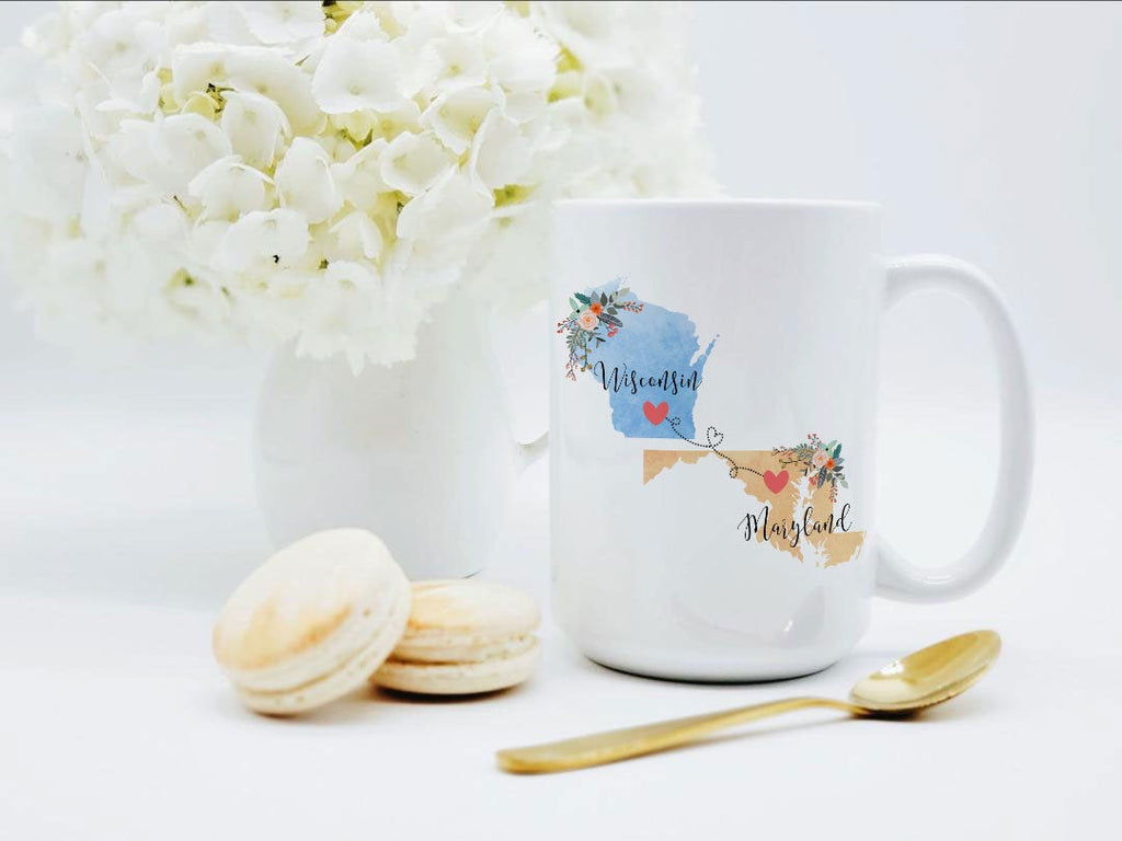 **No Delivery Dates Are Guaranteed. All shipping carriers are currently experiencing delays and transit times can be longer than normal. As a small business, we appreciate your patience and understanding that these circumstances are something that is out of our control. By purchasing this listing you are agreeing that you understand that the shipping date estimation may not be accurate.**Maryland Wisconsin Mug / Wisconsin Maryland Mug / Going Away Gift/College Student Going Away/College Student Gift/ 11 or 15 oz