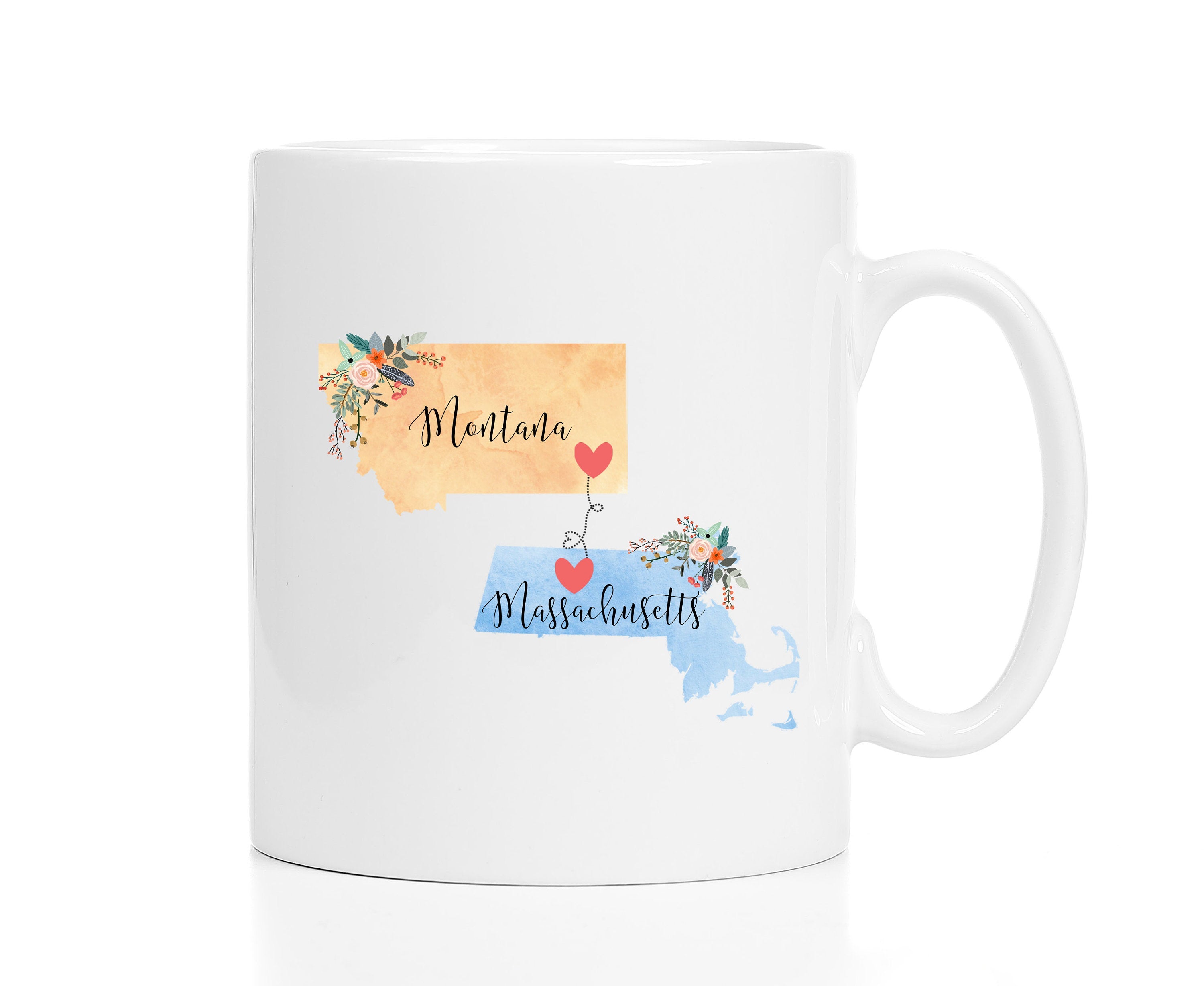 **No Delivery Dates Are Guaranteed. All shipping carriers are currently experiencing delays and transit times can be longer than normal. As a small business, we appreciate your patience and understanding that these circumstances are something that is out of our control. By purchasing this listing you are agreeing that you understand that the shipping date estimation may not be accurate.**Massachusetts Montana Mug / Montana to Massachusetts Mug / Massachusetts to Montana Gift / MA to MO Gift / Summer Vacation Mug / 11 or 15 oz