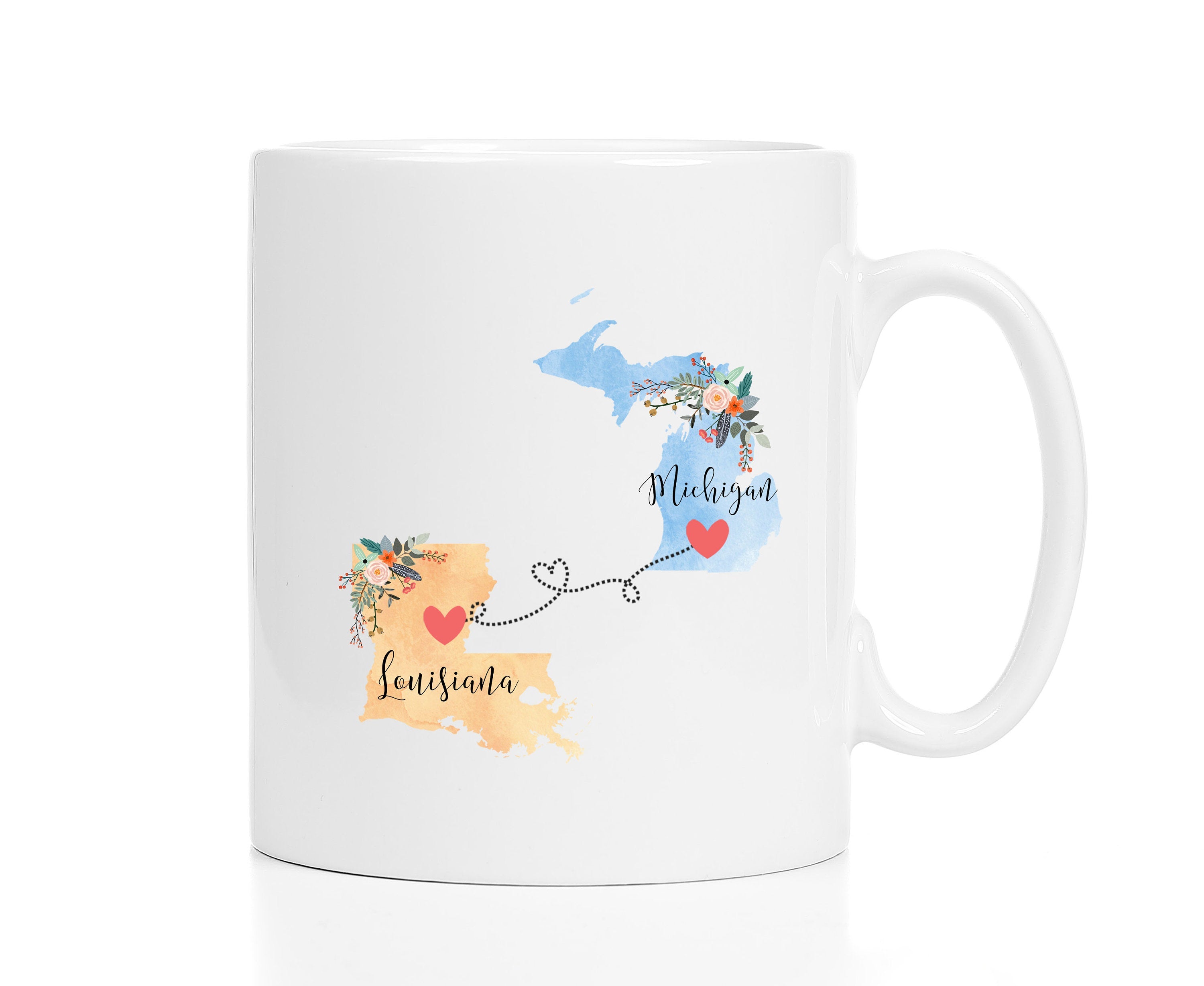 **No Delivery Dates Are Guaranteed. All shipping carriers are currently experiencing delays and transit times can be longer than normal. As a small business, we appreciate your patience and understanding that these circumstances are something that is out of our control. By purchasing this listing you are agreeing that you understand that the shipping date estimation may not be accurate.**Michigan Louisiana Mug / Louisiana Michigan Mug / Michigan to Louisiana Gift / Louisiana to Michigan Gift / 11 or 15 oz