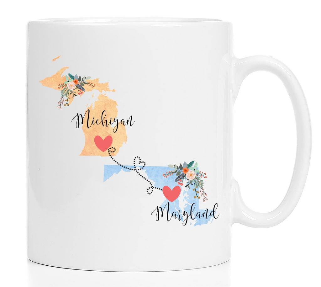 **No Delivery Dates Are Guaranteed. All shipping carriers are currently experiencing delays and transit times can be longer than normal. As a small business, we appreciate your patience and understanding that these circumstances are something that is out of our control. By purchasing this listing you are agreeing that you understand that the shipping date estimation may not be accurate.**Michigan Maryland Mug / Maryland Michigan Mug / Maryland to Michigan Gift / State to State Coffee Mug / Two State Cup / 11 or 15 oz