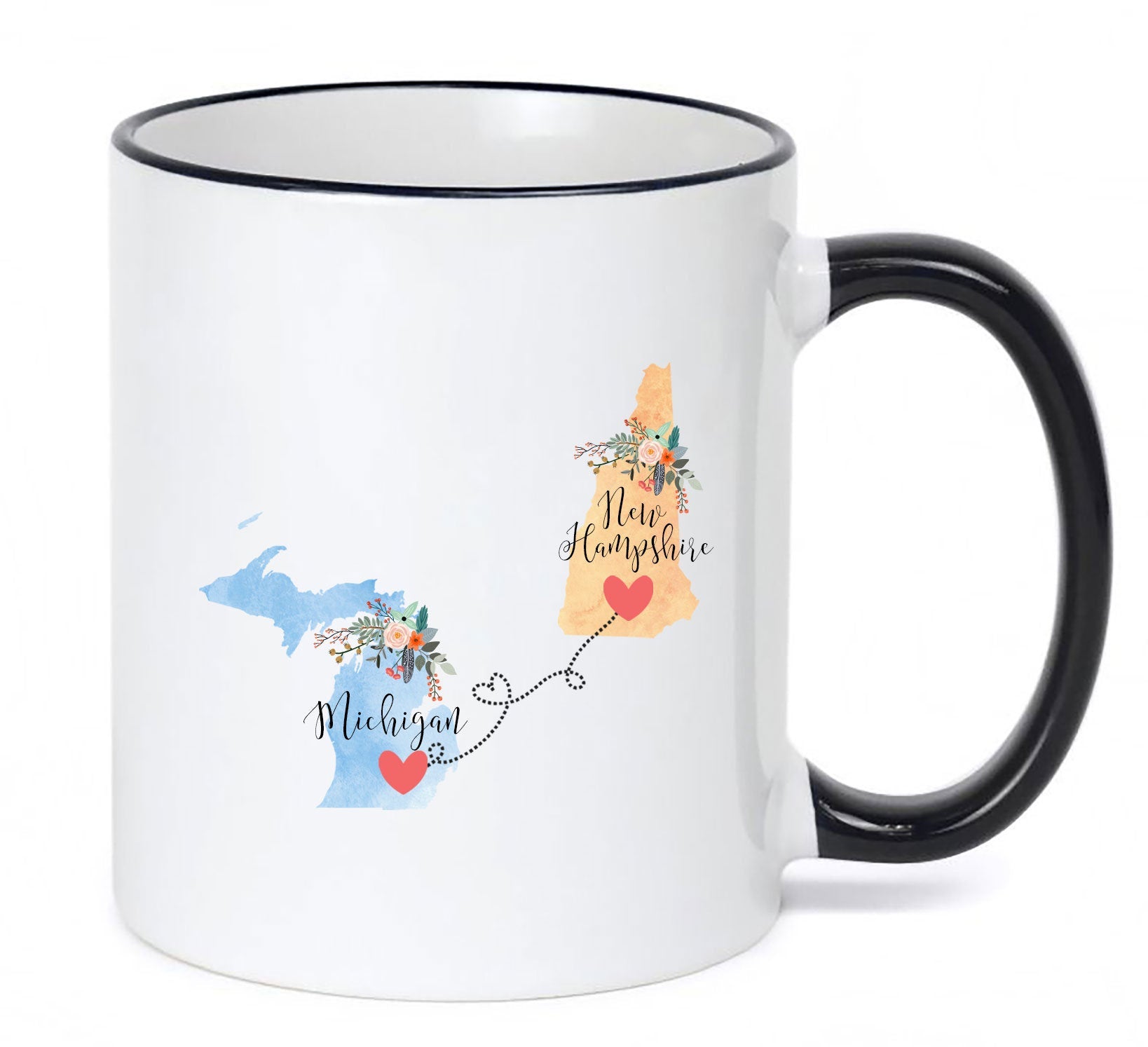 **No Delivery Dates Are Guaranteed. All shipping carriers are currently experiencing delays and transit times can be longer than normal. As a small business, we appreciate your patience and understanding that these circumstances are something that is out of our control. By purchasing this listing you are agreeing that you understand that the shipping date estimation may not be accurate.**Michigan New Hampshire Mug / New Hampshire Michigan Mug / Michigan to New Hampshire Gift / NH to Michigan Gift / 11 or 15 oz