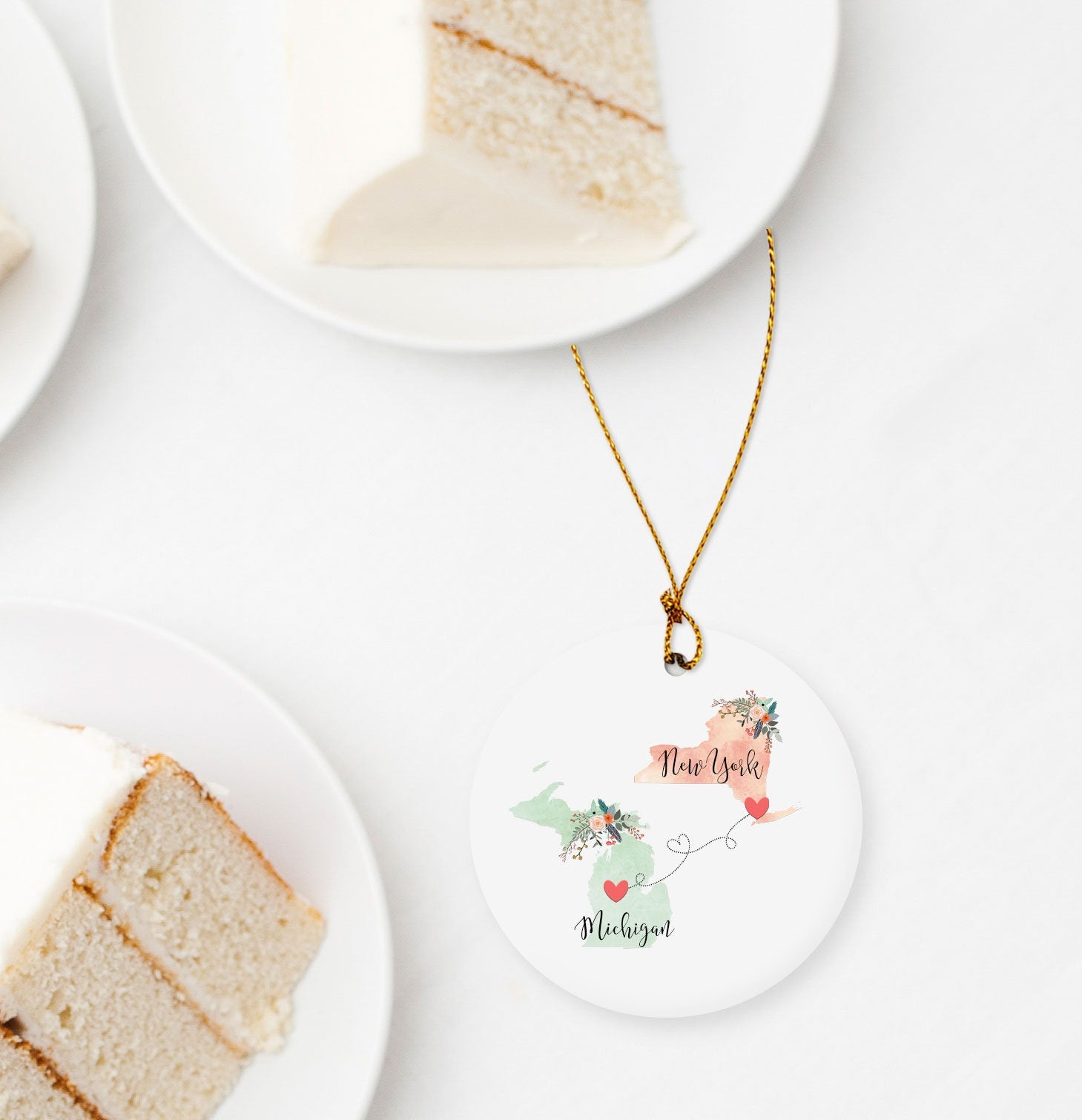 Michigan New York Ornament / Michigan New York Gift / Michigan Christmas Ornament / Missing You Gift / New York Hostess Gift / State Love Ornaments