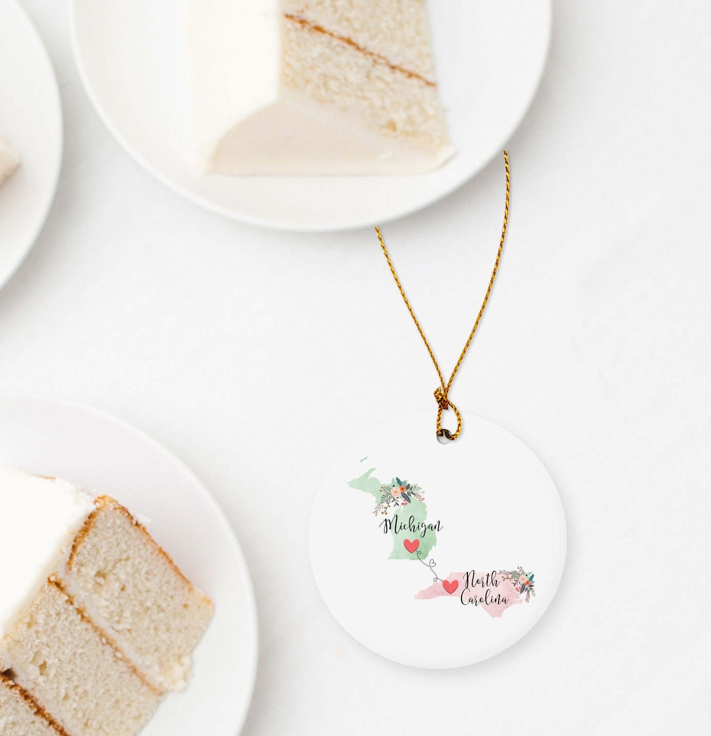 Michigan North Carolina Ornament / Michigan North Carolina Gift / Michigan Christmas Ornament / Missing You Gift / North Carolina Hostess Gift / State Love Ornaments