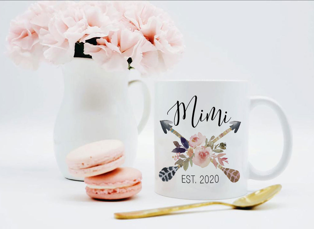 Gorgeous floral mug, with "Mimi" and/or your choice of name. For example, I'm happy to put "Gigi," "Aunt," "Grams," etc. instead. I can also change the year to any year that suits you.