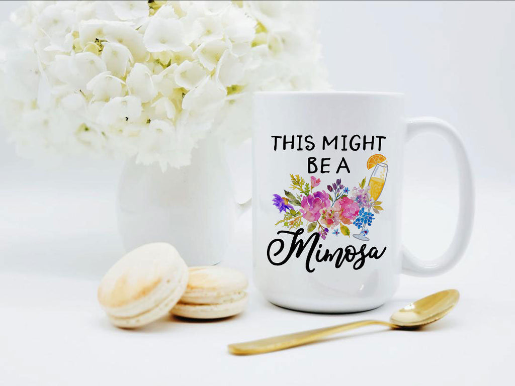 **No Delivery Dates Are Guaranteed. All shipping carriers are currently experiencing delays and transit times can be longer than normal. As a small business, we appreciate your patience and understanding that these circumstances are something that is out of our control. By purchasing this listing you are agreeing that you understand that the shipping date estimation may not be accurate.**This might be a mimosa. This mug comes in both the standard 11 oz. size and a large 15 oz. Dishwasher and microwave safe. Design will be placed on both sides of the mug. Mugs mailed via Priority mail in a sturdy box with plenty of protective packaging. Mimosa Gift / Mimosa Mug / Mimosa Gifts / This Might Be a Mimosa / Mimosa Quotes / Mimosa Cups / Mimosa Coffee Mug / Coffee Cup Gift
