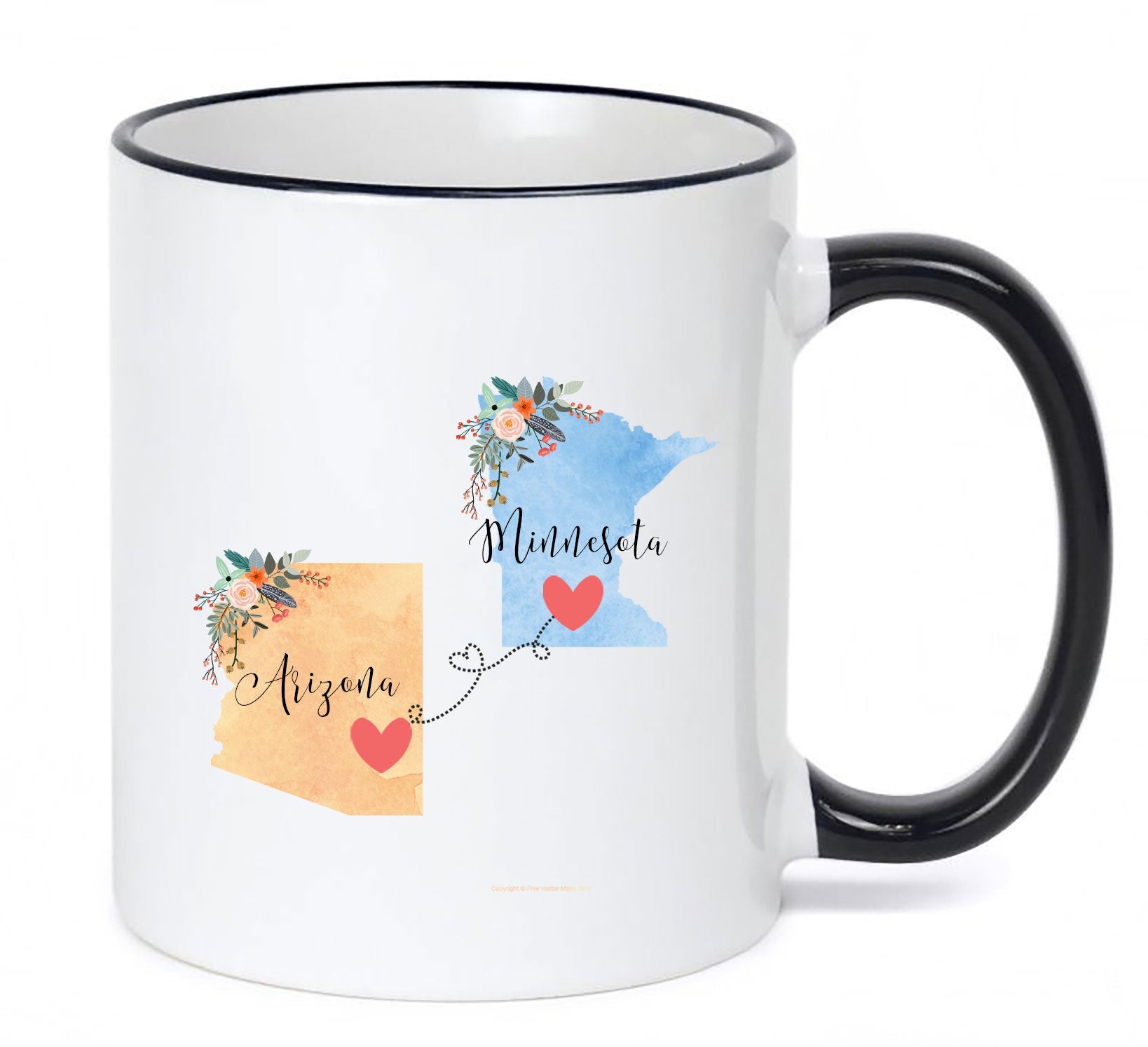 **No Delivery Dates Are Guaranteed. All shipping carriers are currently experiencing delays and transit times can be longer than normal. As a small business, we appreciate your patience and understanding that these circumstances are something that is out of our control. By purchasing this listing you are agreeing that you understand that the shipping date estimation may not be accurate.**Minnesota Arizona Mug / Arizona Minnesota Mug / Minnesota to Arizona Gift / Connected States Mug / Best Friend Mug / Two States Mug