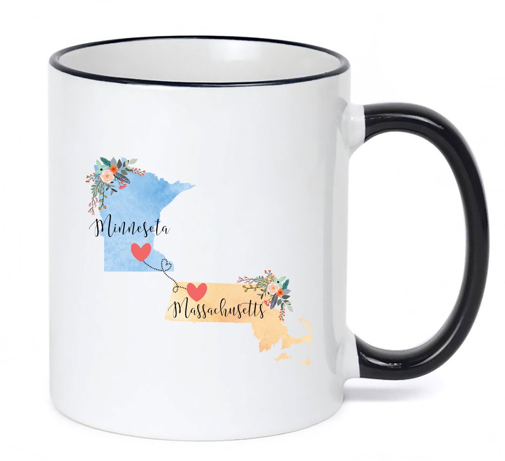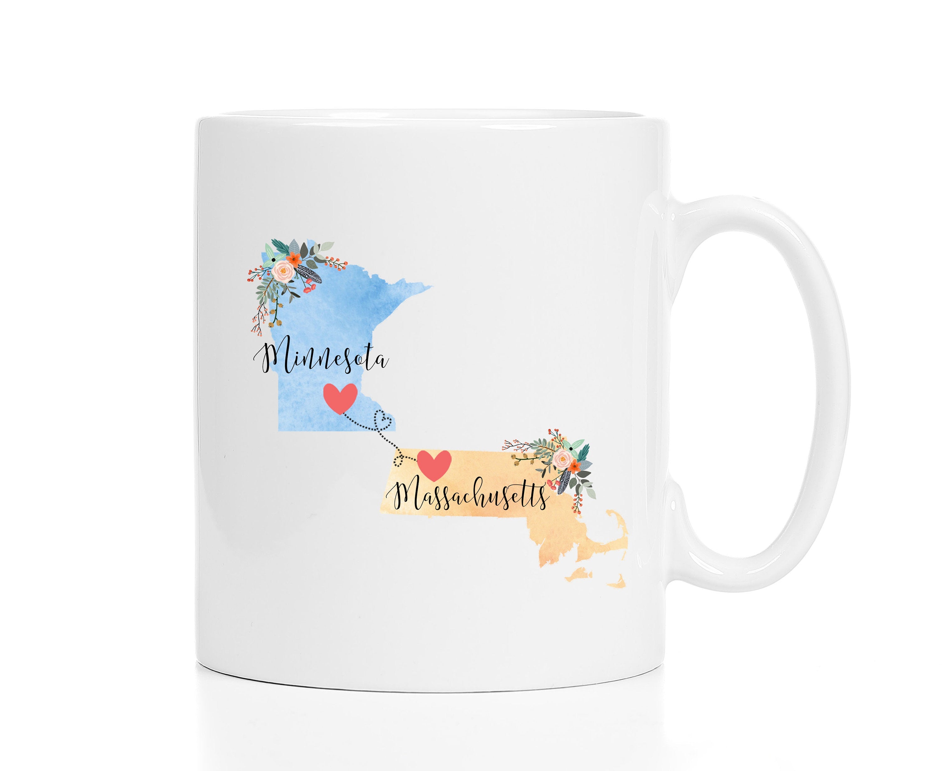 **No Delivery Dates Are Guaranteed. All shipping carriers are currently experiencing delays and transit times can be longer than normal. As a small business, we appreciate your patience and understanding that these circumstances are something that is out of our control. By purchasing this listing you are agreeing that you understand that the shipping date estimation may not be accurate.**Minnesota Massachusetts Mug / Massachusetts Minnesota Mug / Minnesota to MA Gift / Connected States Mug / Best Friend Mug / Two States Mug