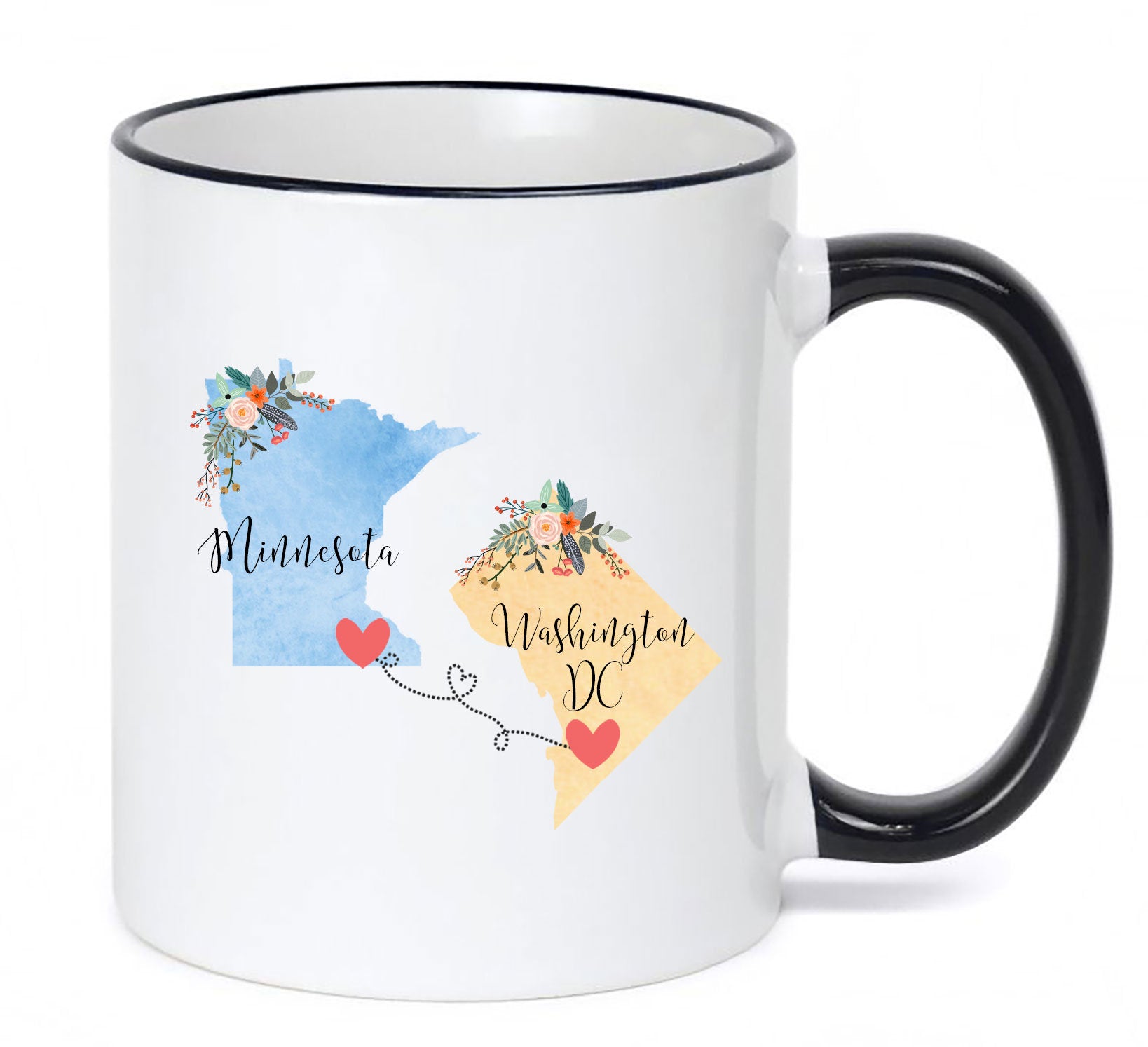 **No Delivery Dates Are Guaranteed. All shipping carriers are currently experiencing delays and transit times can be longer than normal. As a small business, we appreciate your patience and understanding that these circumstances are something that is out of our control. By purchasing this listing you are agreeing that you understand that the shipping date estimation may not be accurate.**Minnesota Washington DC Mug / Washington DC Minnesota Mug / Minnesota to Washington DC Gift / 11 or 15 oz