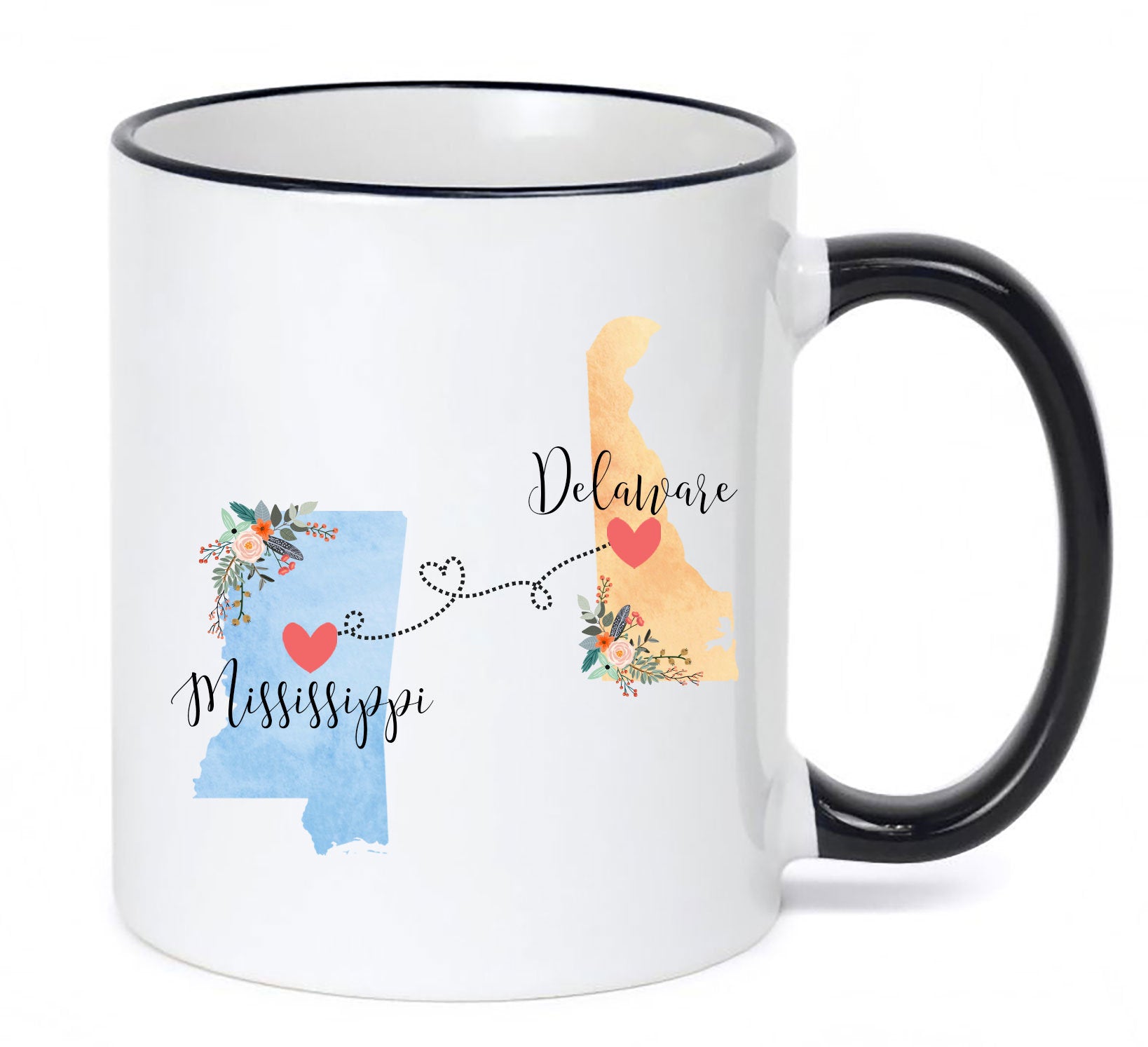 Mississippi Delaware Mug / Delaware Mississippi Gift / Mississippi to Delaware Coffee Mug / Delaware to MS Cup / Hostess Gift / 11 or 15 oz