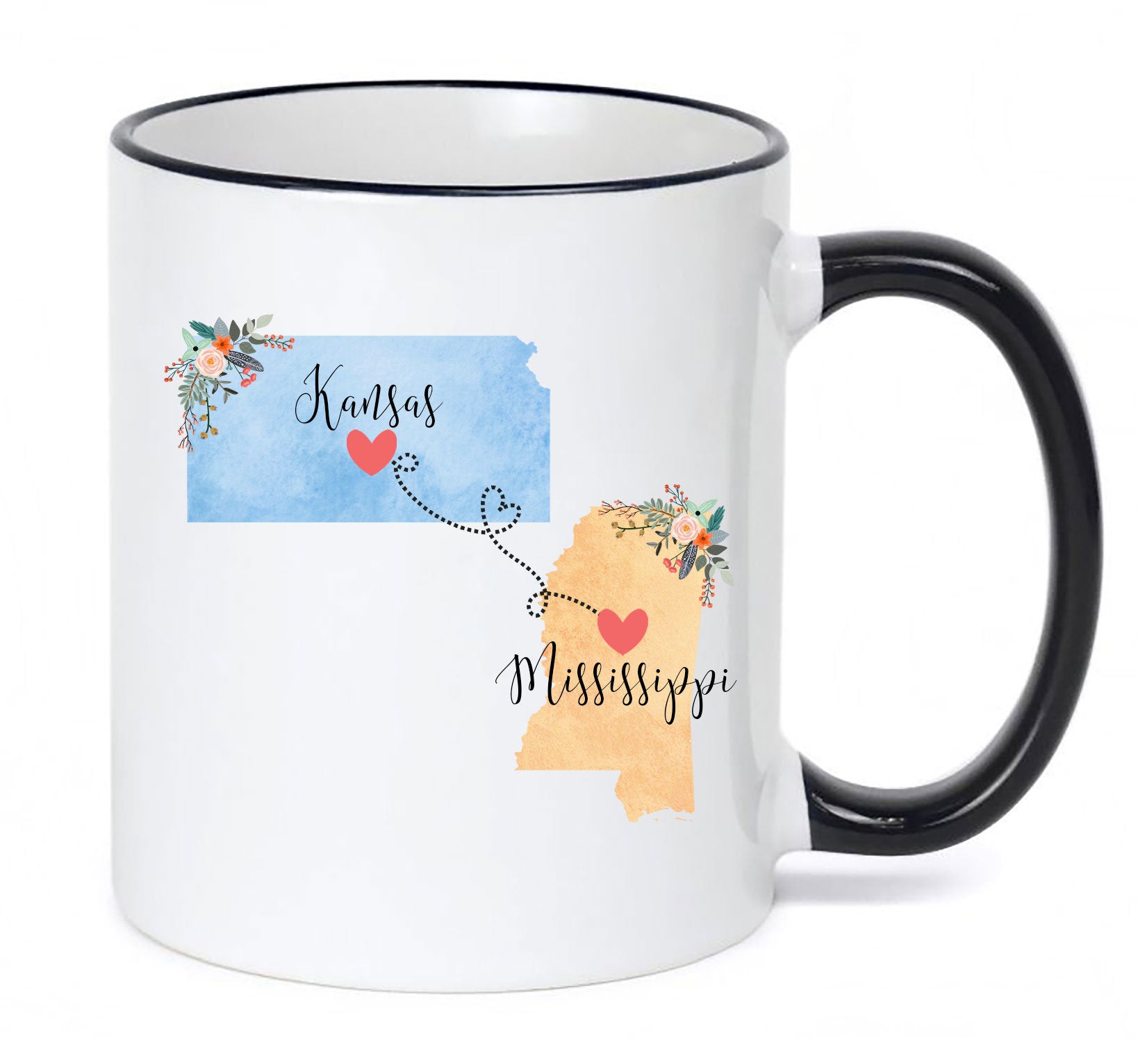 Mississippi Kansas Mug / Kansas Mississippi Mug / Mississippi to Kansas Gift / New Mexico to Kansas Gift / Hostess Gift 11 or 15 oz