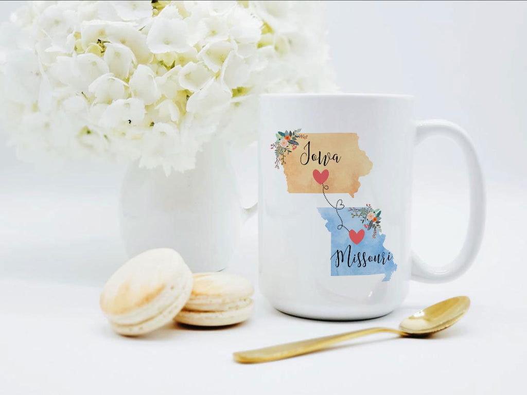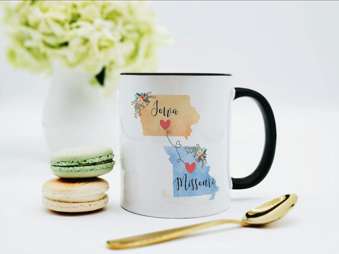 Missouri Iowa Mug / Iowa Missouri Mug / Missouri to Iowa Gift / Iowa Hostess Gift / Moving Gift / Miss You Gift / State to State Mug