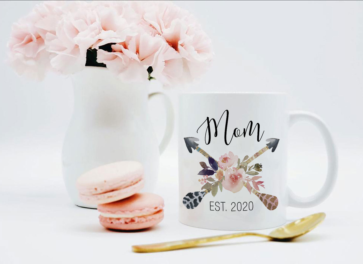**No Delivery Dates Are Guaranteed. All shipping carriers are currently experiencing delays and transit times can be longer than normal. As a small business, we appreciate your patience and understanding that these circumstances are something that is out of our control. By purchasing this listing you are agreeing that you understand that the shipping date estimation may not be accurate.**Mom Est 2020 Mug / New Mom Mug / Pregnancy Reveal Gift / Pregnancy Announce Mug / Pregnancy Reveal for Mom / 11 or 15 oz
