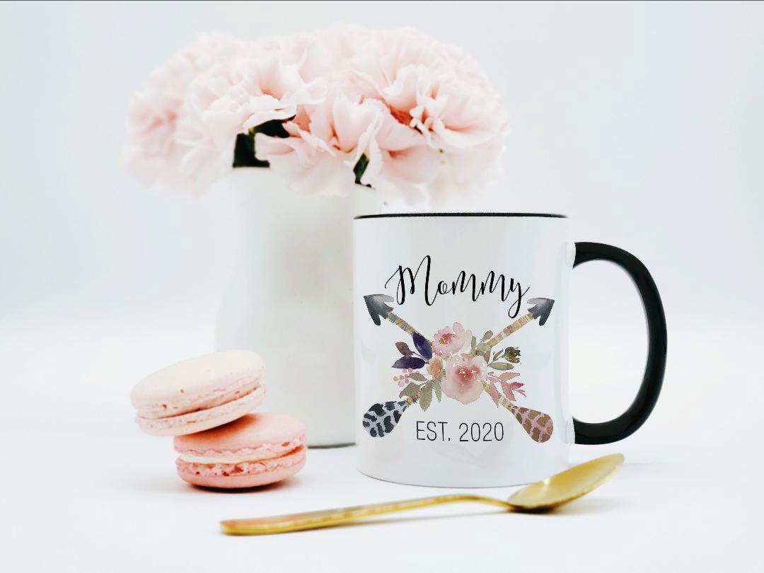**No Delivery Dates Are Guaranteed. All shipping carriers are currently experiencing delays and transit times can be longer than normal. As a small business, we appreciate your patience and understanding that these circumstances are something that is out of our control. By purchasing this listing you are agreeing that you understand that the shipping date estimation may not be accurate.**Mommy Est 2020 Mug / New Mommy Mug / Pregnancy Reveal Gift / Pregnancy Announce Mug / Pregnancy Reveal to Mommy / 11 or 15 oz