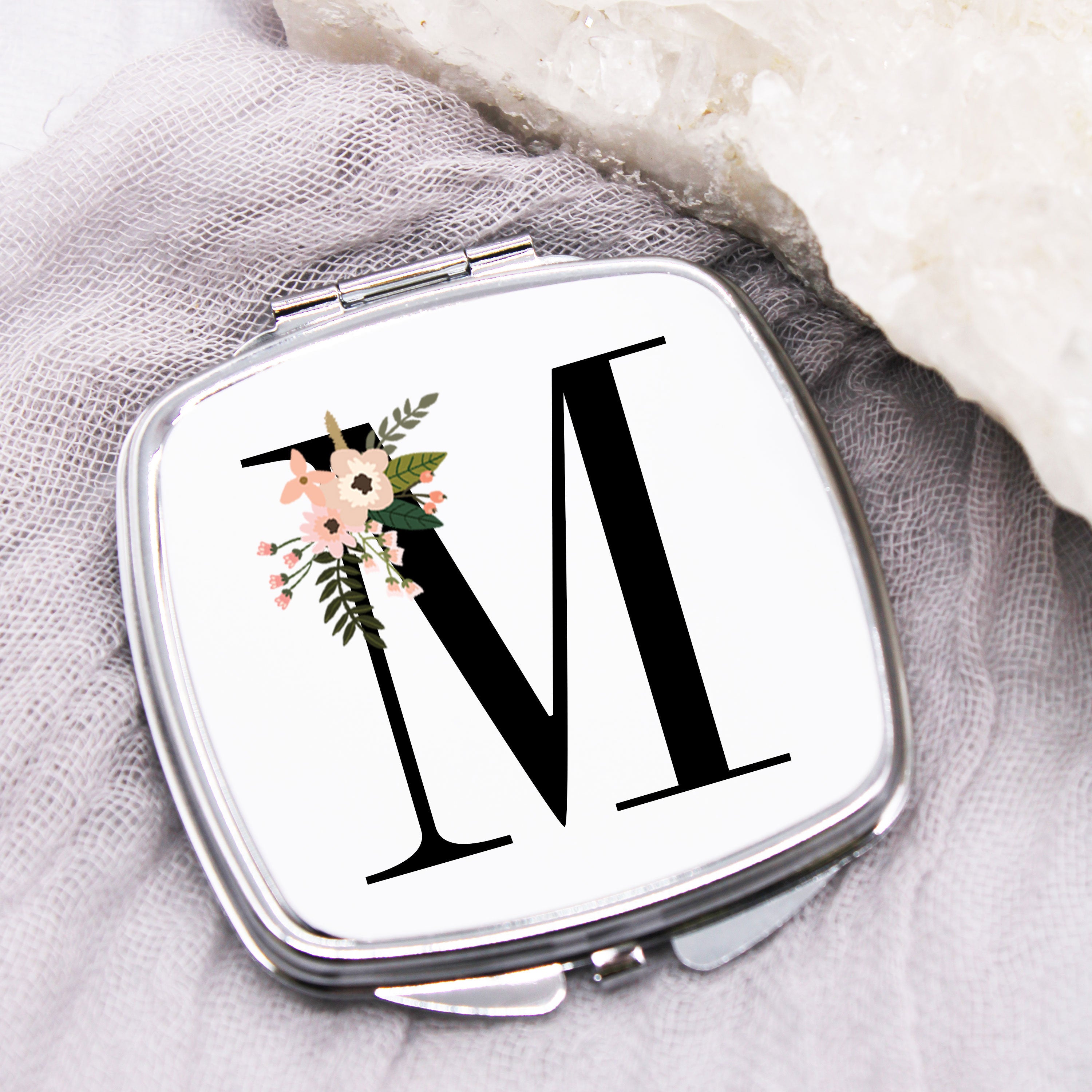 Monogram Compact Mirror / Square Compact / Classy Purse Accessory / Cute Gift / M Compact Mirror / Initial Mirror / Monogram Purse Mirror