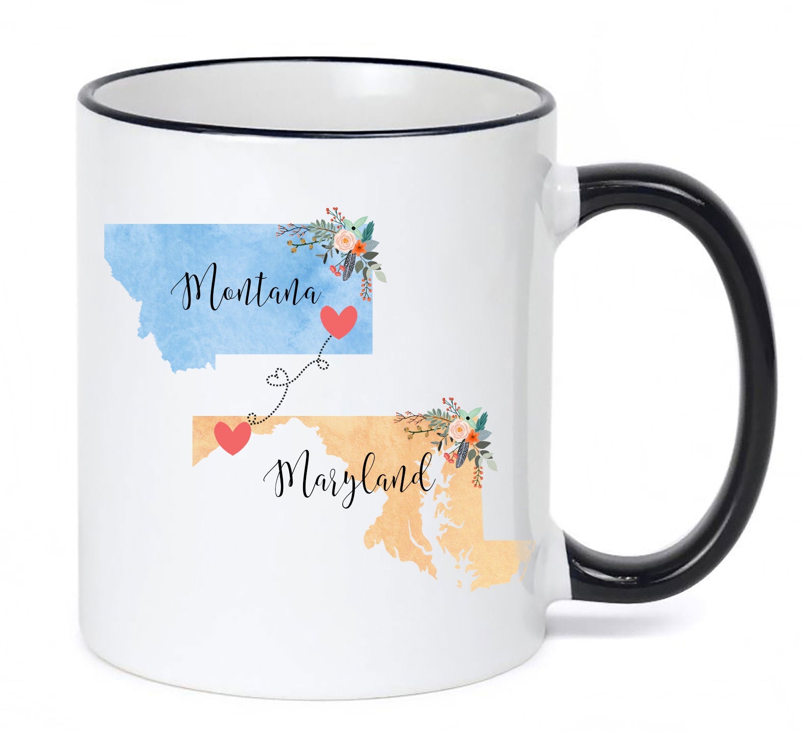 Montana Maryland Mug / Maryland Montana Mug / Maryland to Montana Gift / Two State Coffee Cup Connected States Coffee Mug Montana Vacation