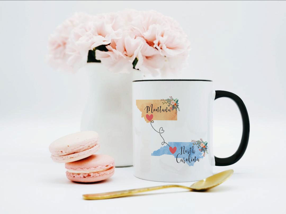 This cute mug makes the perfect gift for a long distance friend or family member. Order two and enjoy drinking coffee together even though you're in different states!